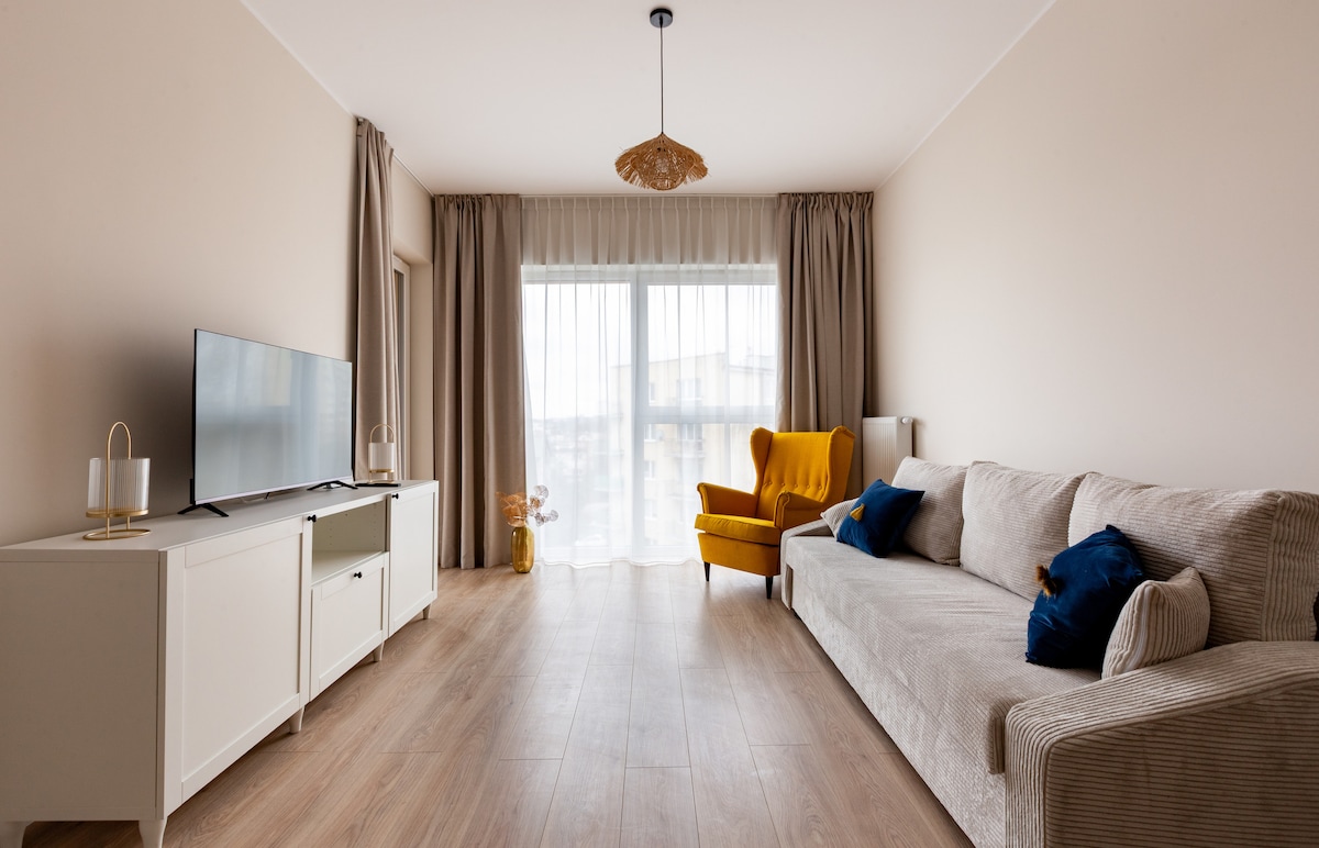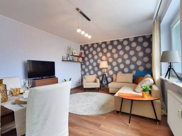 Modern apartment in the new building estate “Seaside Park” surrounded by nature and only a few minutes walk to the Beach (pier Brzezno) and Reagan Park. From here you can walk or cycle the promenade to Sopot (5km) and Gdynia (12km). The apartment is located on the 1th floor with 24 hours security, a beautiful patio and surrounded by a nature reserve. In the estate there are sections for relaxation: fitness hall, “audiophile zone” with professional sound systems.