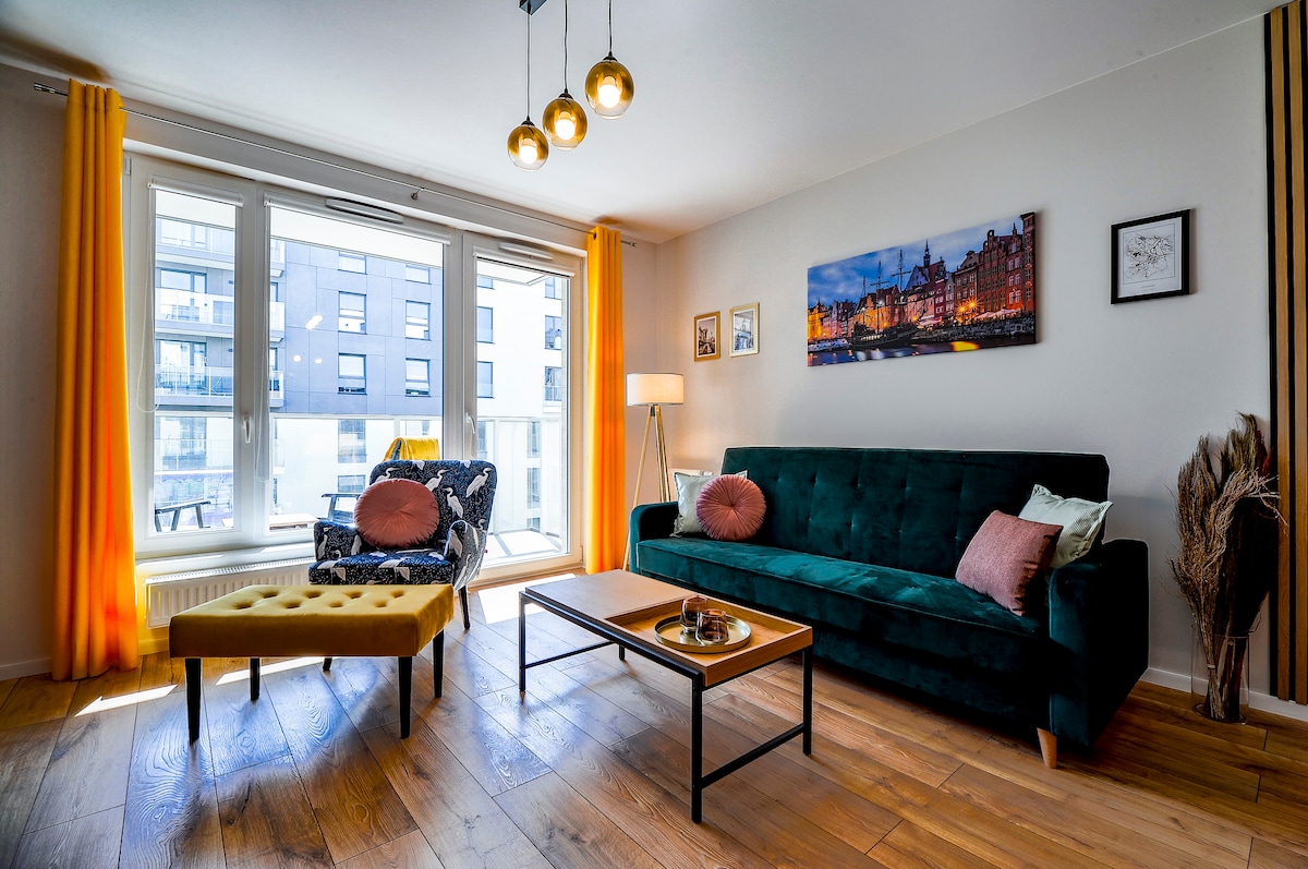 Enjoy a peaceful and stylish stay at this centrally-located place. A newly built, beautifully furnished apartment, perfect for a quiet stay in the heart of Gdańsk. Located on the greenest side of the city center, right next to Góra Gradowa. Although historical and cultural sights, shops, and restaurants are only a 10-15 min walk away, the area feels peaceful and secluded. The place offers a unique, cozy, and very comfortable design, perfect for a couple and a weekend escape.