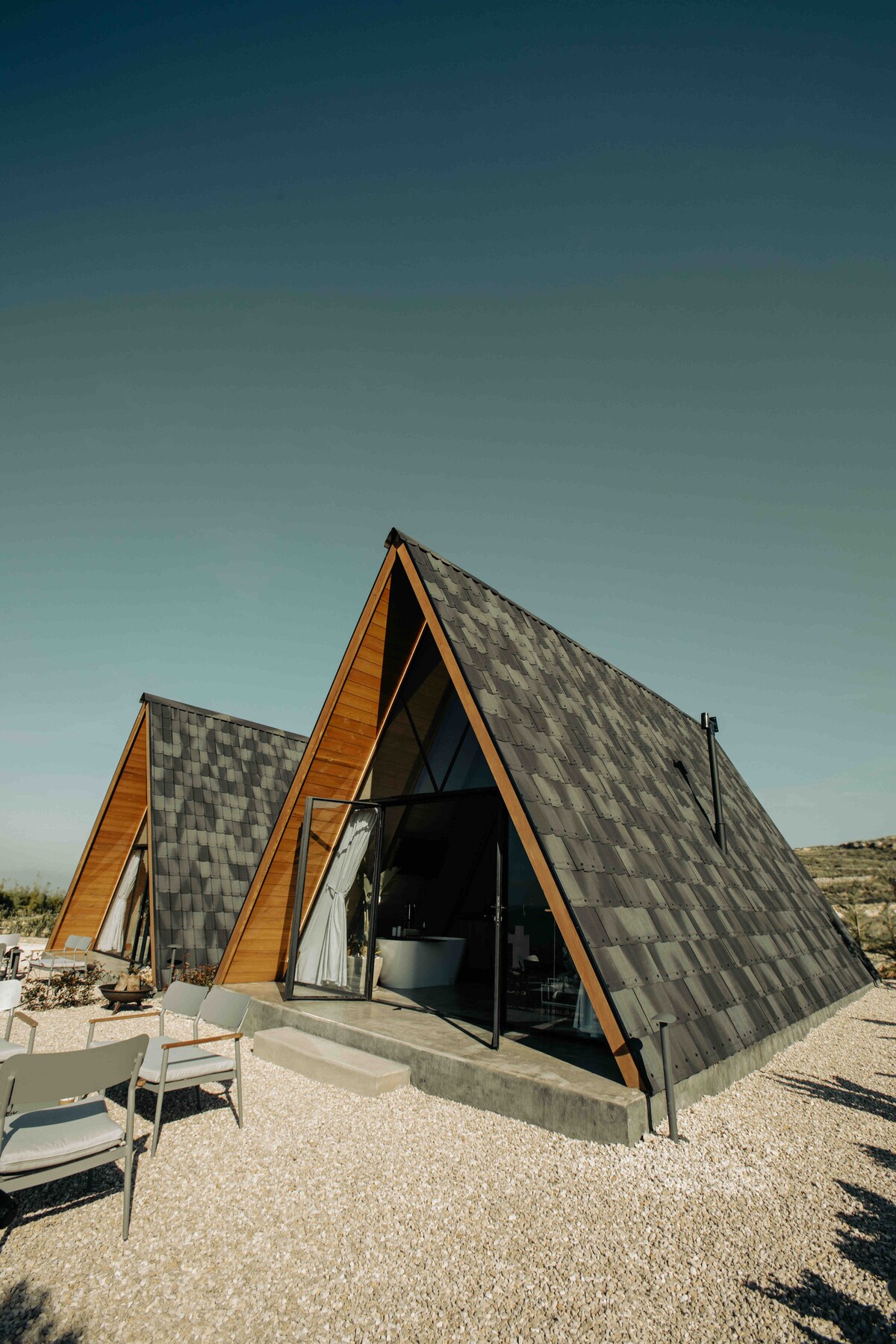 The Energy Villa is located in an area where mountains, forests, and majestic rocks meet to allow you a full immersion in nature. Its relaxed aesthetic, muted palette, and open-plan glass design blends into its dramatic surroundings to offer you a unique experience rooted in an unparalleled connection to nature and the views of the mountains that surround it.