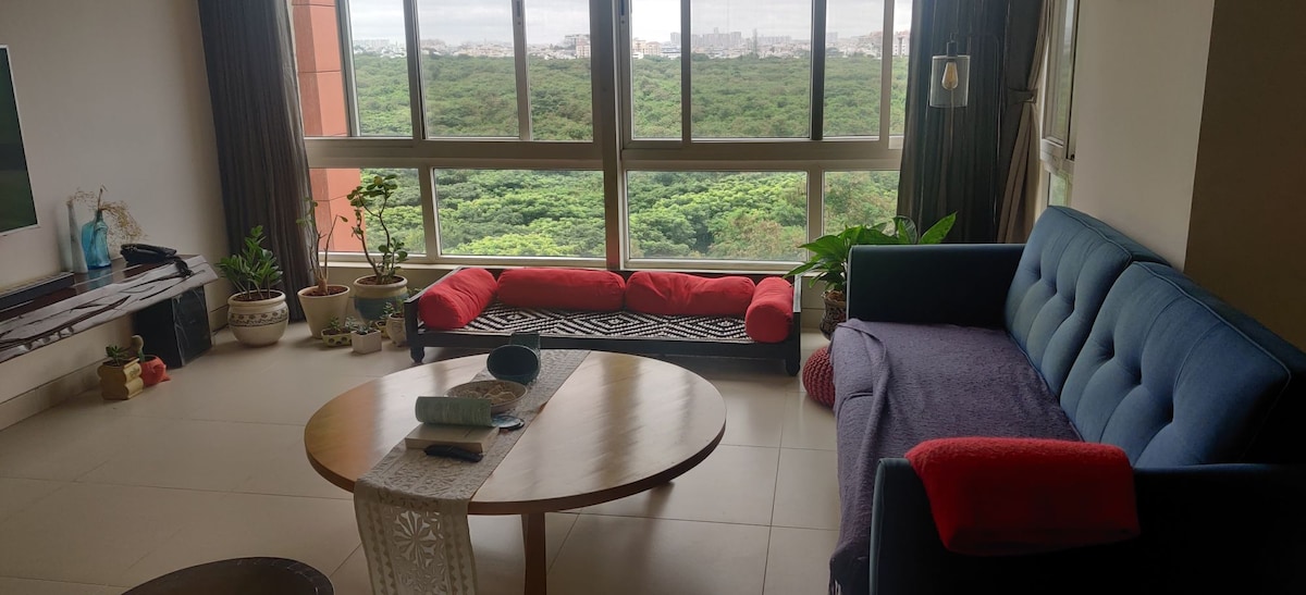 We would love to host you in our 1 BHK (EARTHY Homestay) that blends style with an earthy, peaceful vibe & unbeatable panoramas. - Balcony Oasis: Forest view + cinematic sunsets at 200 m - Prime Locale: 2 min to NIFT & 3 min to 27th Main’s cafés, boutiques & street‑food - Serene Interiors: Queen bed, ambient lighting & lush live plants - Work & Play: High‑speed Wi‑Fi, Large TV and fresh air Experience style, serenity & spectacular sunsets—all in one cozy retreat! - 5th floor (No Lift)