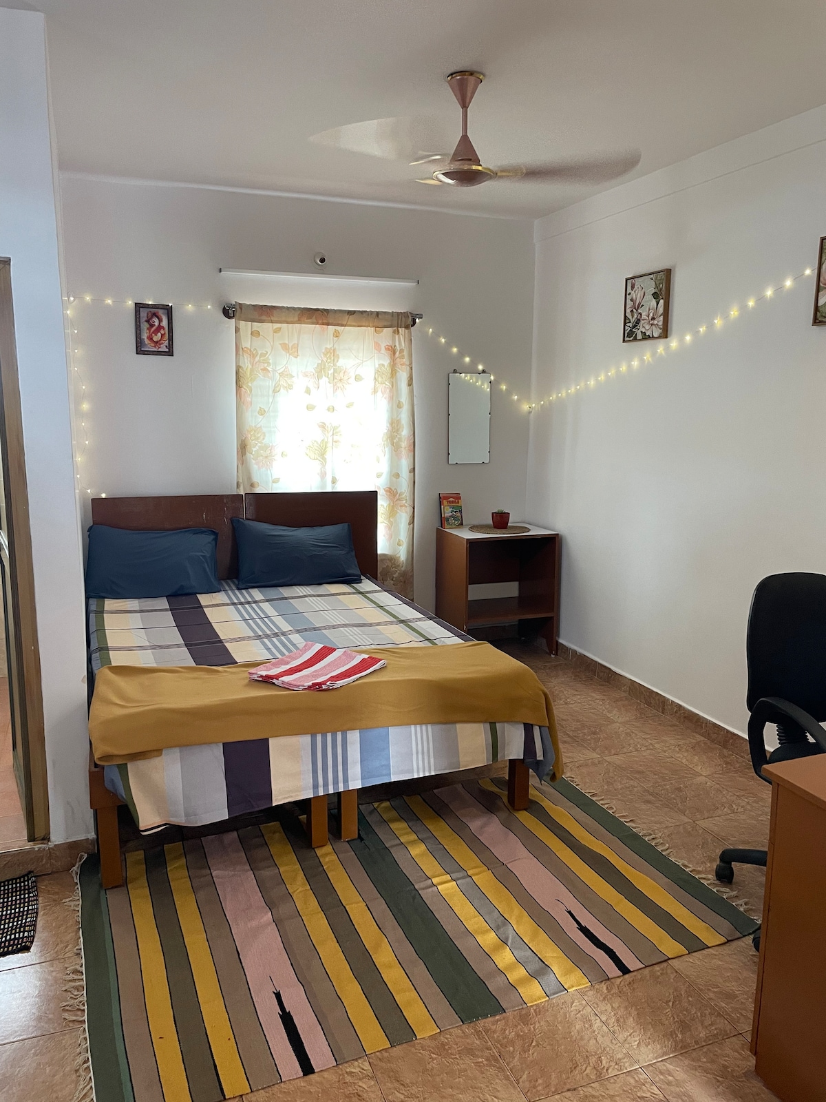 This is a perfectly situated apartment in the heart of Bangalore, near JP Nagar, BTM layout & Jayanagar. 2 Bed Rooms, 2 Bath rooms, Living, Full Kitchen, 3 Balconies (extra bed on request). Max occupancy of 6 people. Full Time in-House Care Taker. CCTV & 24/7 Security. Act Fibernet Wifi with 100mbps. Designated workspace. Smart TV (self login). Washer and Dryer available in the building. Free Street parking . Lift & Backup generator. Alternate Day Housekeeping.