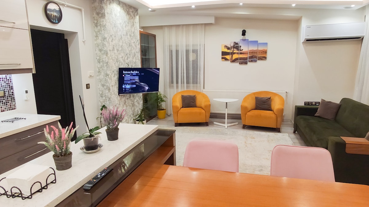 1774 Sayılı Kimlik Bildirme Kanunu nedeniyle rezervasyon sonrasında kimlik ve ya pasaport bilginiz istenmektedir. Evimiz doğalgazlı olup kışları sıcacıktır. Android TV sayesinde Netflix, Youtube, Disney Plus vb. uygulamalardan hesaplarınızla dizi film izleyebilirsiniz. Mutfakda her türlü tabak, tava, bardak vb. bulunmaktadır. Araçla: Adnan Menderes Havalimanına 17 dk Urlaya 36 dk Çeşmeye 56 dk mesafededir. 2 dk Yürüme mesafesindeki otobüs hatları 805,105,818,171