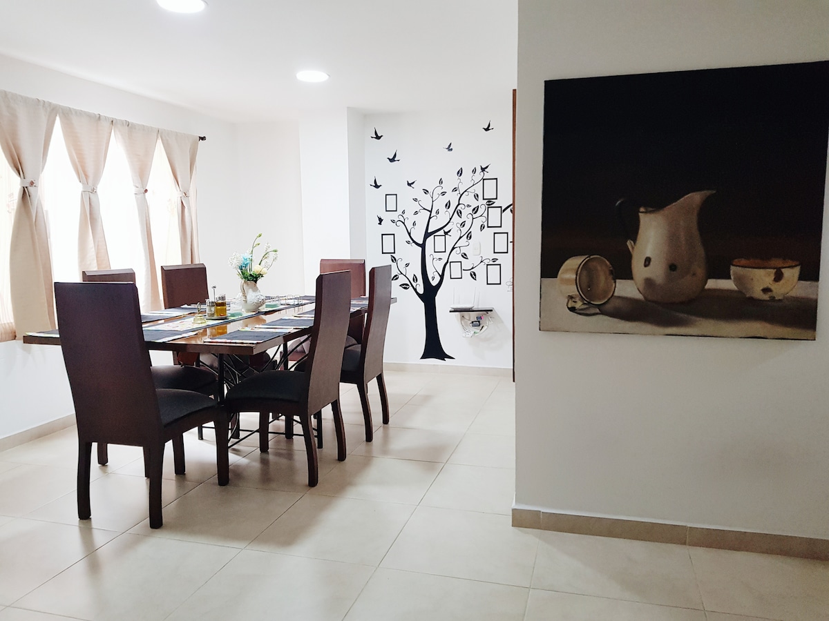 Disfruta de éste amplio y moderno apartamento de 130m2 full amoblado con todo lo necesario para una agradable estadia de max 6 personas. Ubicado en el piso 4, con parqueadero privado, excelente iluminación natural durante el día. Este lugar tiene una ubicación estratégica muy cerca de centros comerciales, bancos, restaurantes, supermercados y otras zonas de interés. El edificio cuenta con camaras exteriores de vigilancia las 24 horas.