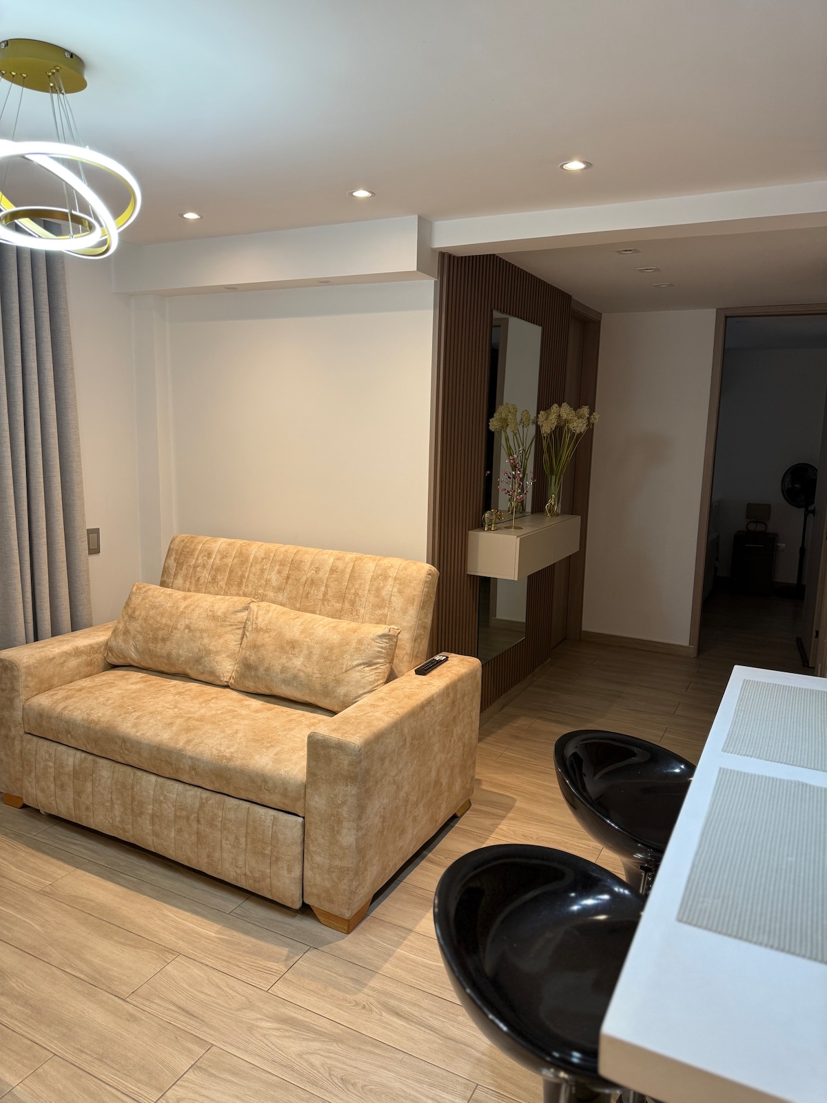Disfruta de éste amplio y moderno apartamento de 130m2 full amoblado con todo lo necesario para una agradable estadia de max 6 personas. Ubicado en el piso 4, con parqueadero privado, excelente iluminación natural durante el día. Este lugar tiene una ubicación estratégica muy cerca de centros comerciales, bancos, restaurantes, supermercados y otras zonas de interés. El edificio cuenta con camaras exteriores de vigilancia las 24 horas.