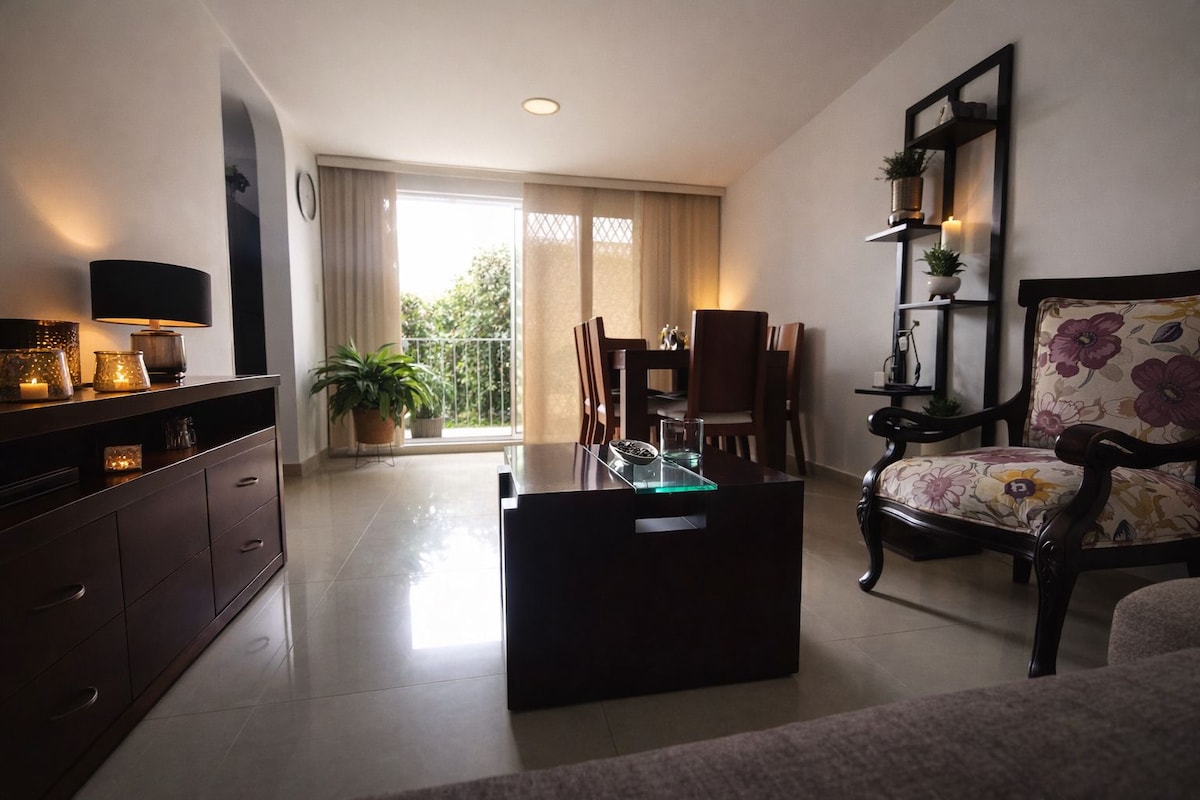 ¡Queremos ser tus anfitriones! Permítenos mostrarte por qué deberías reservar con nosotros: 1. La mejor ubicación de la zona 2. Apartamento entero 2/2 3. Diseñado para 4 huéspedes, 2 camas Queen 4. Completamente dotado. 5. Tv inteligente 6. Wifi 7. Parqueadero privado (1) 8. Lavadora. 9. Zona tranquila y segura 10. Condominio con piscina adultos y niños, sauna, turco, gimnasio. 11. A 7 min de la Foscal y la Cardiovascular.