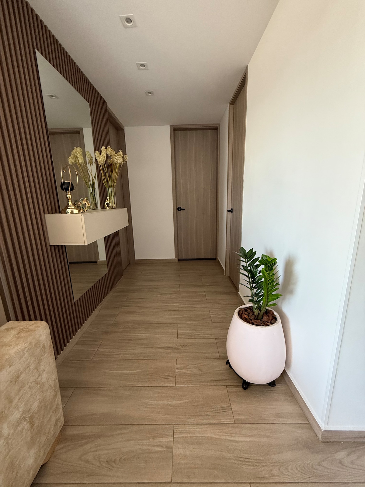 Disfruta de una experiencia de lujo en este lindo apartamento. Cerca a los centros comerciales del área metropolitana, a Neomundo y centros médicos. Cuenta con parqueadero. Apartamento nuevo con dos habitaciones, dos baños, cocina abierta y una sala cómoda. En este lugar podrá disfrutar de una gran vista de Bucaramanga y Floridablanca. La habitación principal cuenta con aire acondicionado, las habitaciones cuentan con Smart TV. Podrás disfrutar de acceso a internet de fibra óptica.