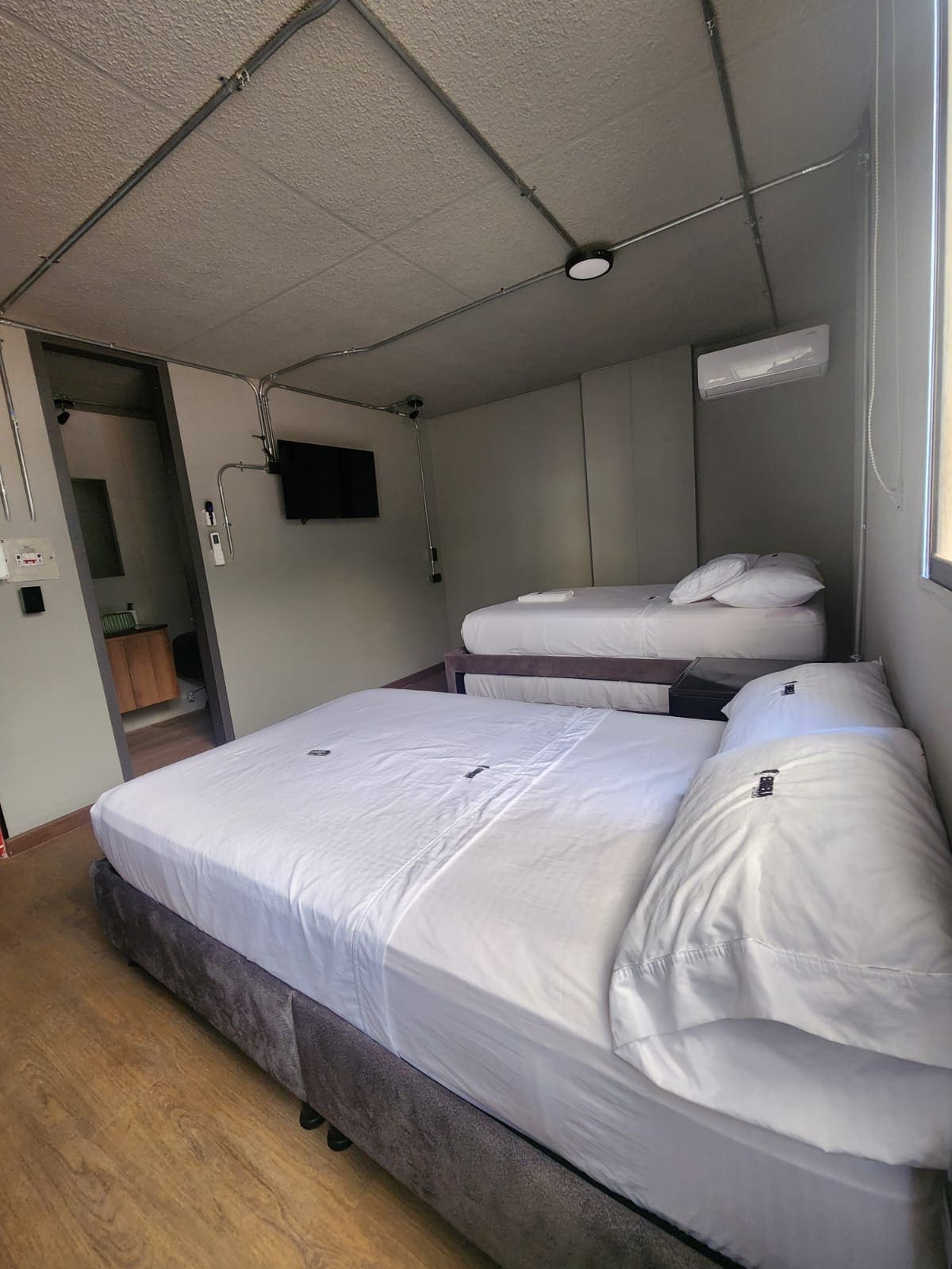Habitación privada con 2 camas sencilla, baño, TV y Wi-Fi. Ideal para parejas o viajeros solos que buscan tranquilidad
