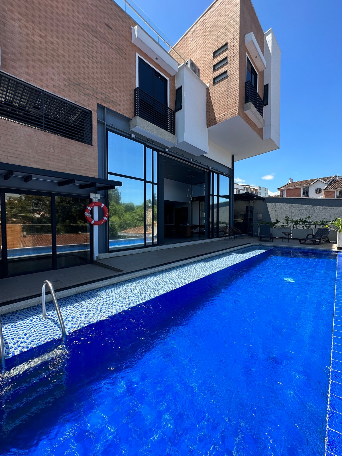 Discover tranquility at Serenity Suites, a spacious room featuring a queen-size bed, reading sofa, private bathroom, and included breakfast. Enjoy our common areas with a jacuzzi, pool, and steam room. Located just 5 minutes from Cabecera and CC Cacique, and 12 minutes from downtown, near UNAB and UDES. Surrounded by nature, we offer free Wi-Fi, garden and city views. Here, tranquility is paramount. Come and enjoy a warm and welcoming atmosphere, as if you were at home!