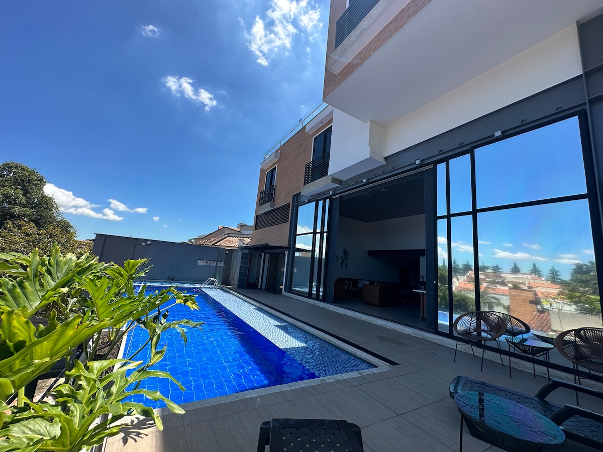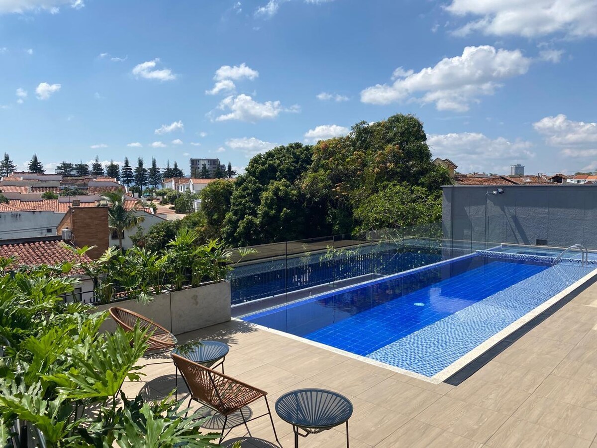 Discover our charming room at Serenity Suites with a double bed in Altos de Pan de Azúcar. Wake up to a delicious included breakfast and enjoy our facilities: swimming pool, jacuzzi. Ideally located 5 minutes from Cabecera and CC Cacique, 12 minutes from downtown, and close to UNAB and UDES. Surrounded by nature, we offer a tranquil environment, garden view, and free Wi-Fi. Come and enjoy a warm and welcoming atmosphere!