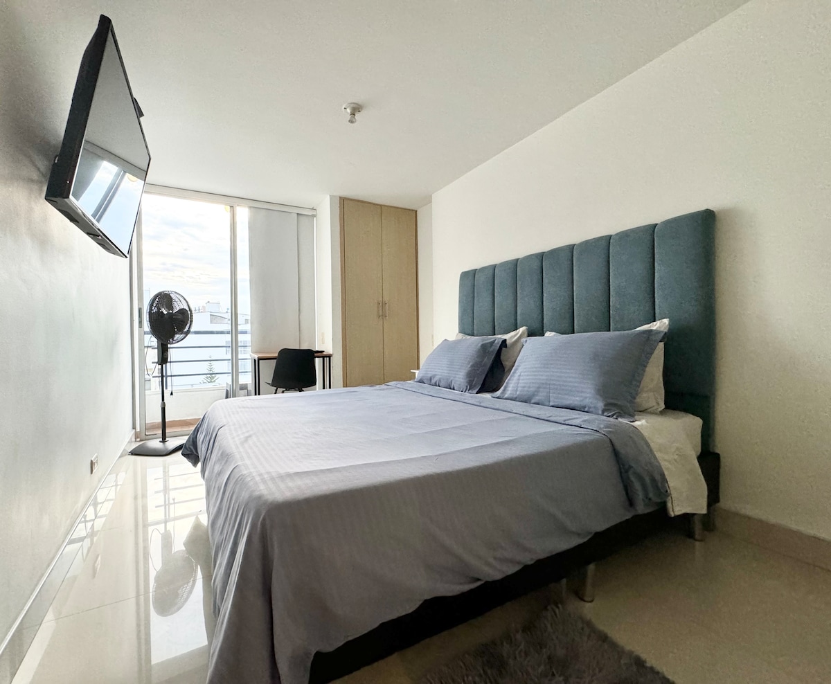 Exclusivo Loft con maravillosa vista al parque, ingreso automatizado, internet de alta velocidad con doble canal de respaldo, planta de energía eléctrica de soporte, aire acondicionado, ascensor, mini market y farmacia 24 horas, ventanales piso-techo con cortinas blackout, cama King size, cocina equipada, Smart tv 55", mesa escritorio con silla ergonómica, hamaca, hiking, running, mountain bike, en el sector exclusivo de Cabecera del llano, a minutos cafés-restaurantes, centro comercial 5 etapa