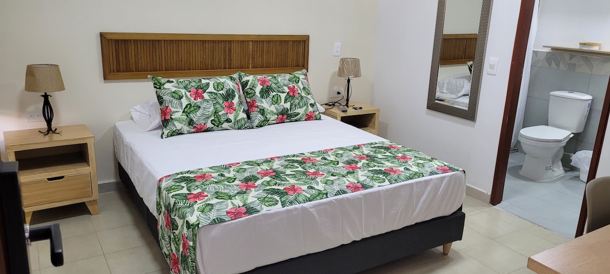 Disfruta de la sencillez de este alojamiento tranquilo y céntrico. Apartaestudio privado , piso 4to, fresco y cómodo. La sala comedor (sofá-estudio-TV) Cocina equipada con lo esencial, lo cual le permite la preparación de los alimentos. La habitación ofrece tranquilidad para descansar después de un largo día ( ventilador). Ducha Caliente. PROHIBIDO EL CONSUMO DE MARIHUANA O SUSTANCIAS PSICOACTIVAS. POR SU SEGURIDAD Y LA NUESTRA DEBE PRESENTAR DOC DE IDENTIDAD AL INGRESAR AL ALOJAMIENTO.