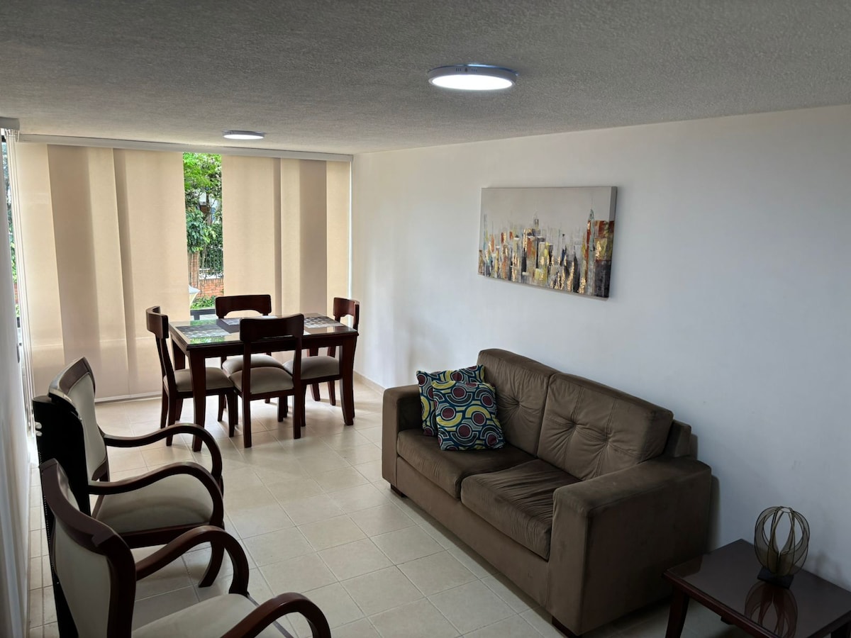 ¡Queremos ser tus anfitriones! Permítenos mostrarte por qué deberías reservar con nosotros: 1. La mejor ubicación de la zona 2. Apartamento entero 2/2 3. Diseñado para 4 huéspedes, 2 camas Queen 4. Completamente dotado. 5. Tv inteligente 6. Wifi 7. Parqueadero privado (1) 8. Lavadora. 9. Zona tranquila y segura 10. Condominio con piscina adultos y niños, sauna, turco, gimnasio. 11. A 7 min de la Foscal y la Cardiovascular.