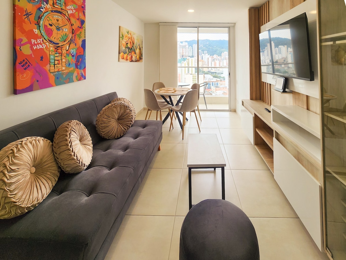 Disfruta de la comodidad de este alojamiento tranquilo y céntrico. Apartamento tipo loft equipado para una estadía placentera. Supermercado y spa en el mismo edificio. Ideal para nomadas digitales, recuperacion de cirugías, viajes de negocios, visitas familiares. Zonas comunes como piscina y gimnasio (disponible para reservaciones mayores a 30 dias y un costo adicional de $80.000)