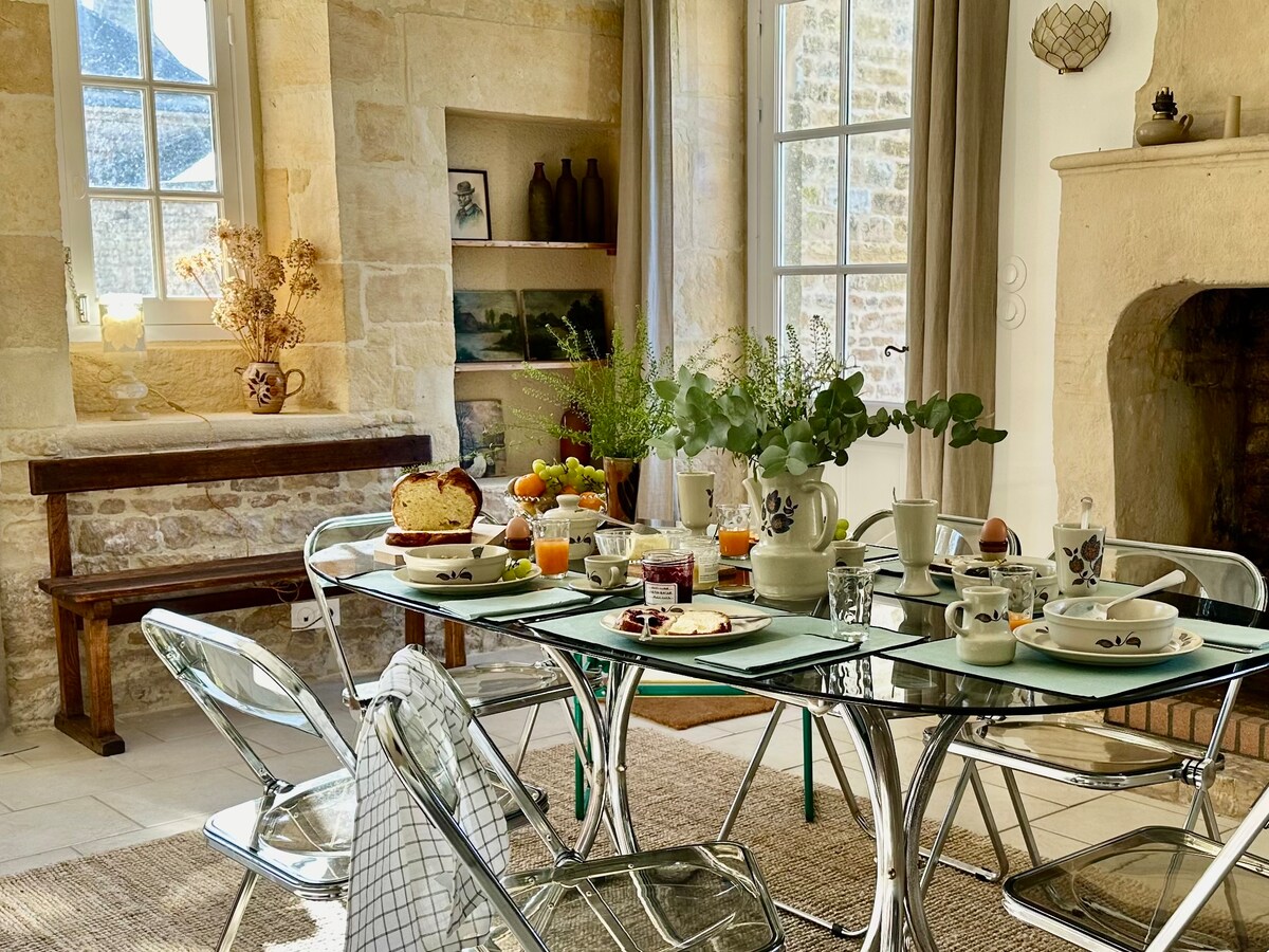 Ancienne maison de caractère fin 18eme récemment rénovée. Le logement proposé correspond aux 2/3 de la bâtisse, côté gauche. Les hôtes peuvent profiter d'une entrée privative et de pièces de vie entièrement dédiées. A l'extérieur le calme de la campagne permet de se ressourcer. Côté activité : un billard, jeux de sociétés, terrain de pétanque, vélo, proximité des animaux. La maison est située à 18 km de Bayeux, 25 km de Caen et des plages du débarquement, à 1 heure du Mont Saint Michel.
