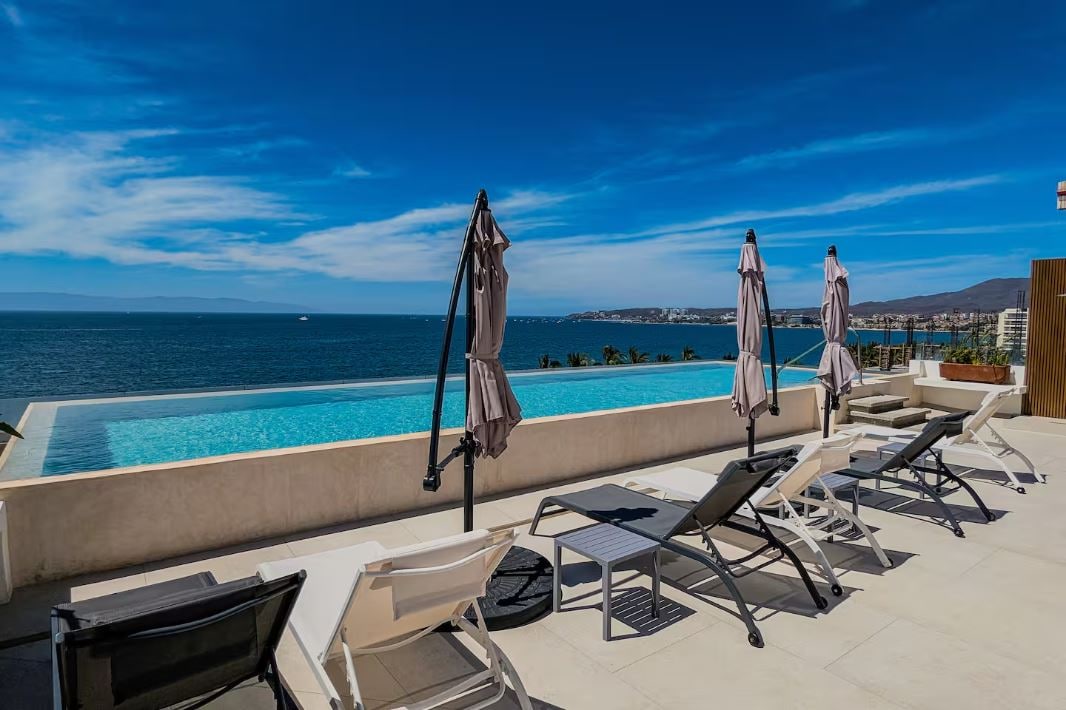 Casa Perla is a new build/ newly furnished penthouse that blends elegant design and comfort—and ocean views that refuse to be ignored. Steps from the beach, it’s perfect for a romantic escape, family getaway, or inspired remote work. Lounge on your private wraparound balcony, soak up the sun on two exclusive loungers, and let airy high ceilings and sun-filled spaces show you what true glamour feels like. Minutes from Bucerías’ art, tacos, and local culture—experience Riviera Nayarit’s finest.