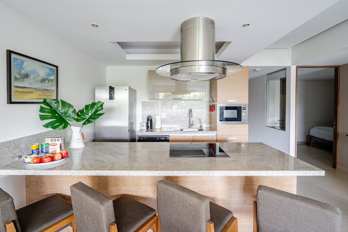 🌊☀️🏖️ Modern beachfront condo in the exclusive GRAND VENETIAN. Designed for total relaxation with stunning Pacific Ocean views and the sound of waves right at your balcony. Location & Lifestyle 📍 Prime Spot: 10 mins from the Airport & Downtown (Malecón). Dining: Steak, Seafood, and Italian restaurants right across the street. Shopping: Steps away from La Isla Shopping Village & Plaza Peninsula (Starbucks, Banks, Boutiques). Groceries: Walk to Chedraui; Costco & La Comer just 2km away.