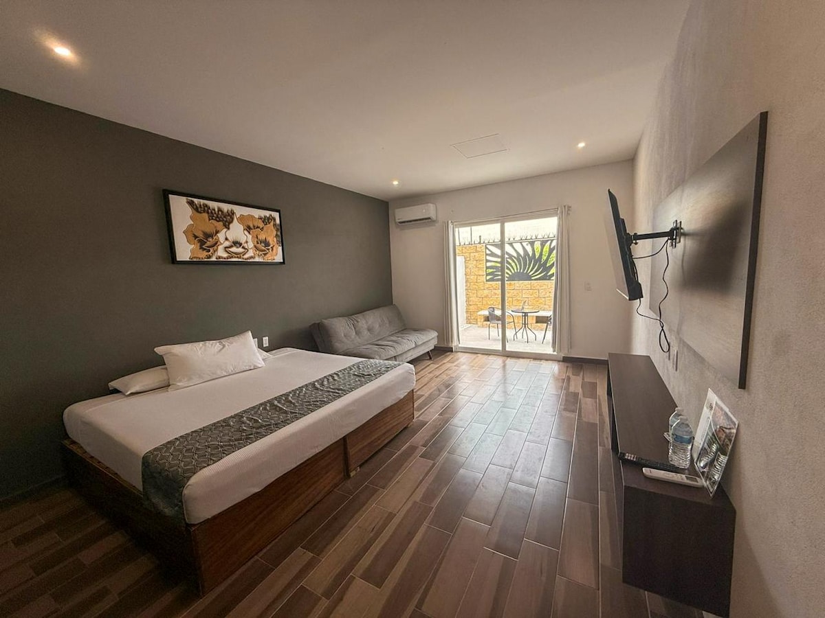 Inspiring Studio with Mexican style decoration located right in the middle of everything, half block from Malecon and the beach! Walkability and location cannot be beaten. Come and witness this amazing Mexican experience. This place is perfect for a couple but there is room for 4 persons. Sofa in living room is inflatable and it becomes a queen bed. King size bed with memory foam and cooling gel will make you sleep like a baby. Ask me!