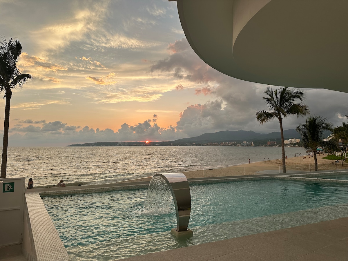 Sumérgete en la elegancia y serenidad del nuevo y exclusivo desarrollo a pie de playa de Bucerías. -Alberca climatizada -Jacuzzi con hidromasaje -Restaurante bar frente al mar -Estacionamiento techado y seguridad 24/7 -Wifi de alta velocidad en todo el condominio -Cuarto de juegos incluyendo billar, mesa de póquer y sala con pantalla gigante -Terraza en azotea con vista increíble -Fireplace volado al mar -Camas y camastros -Zona de parrillada -Gimnasio y spa