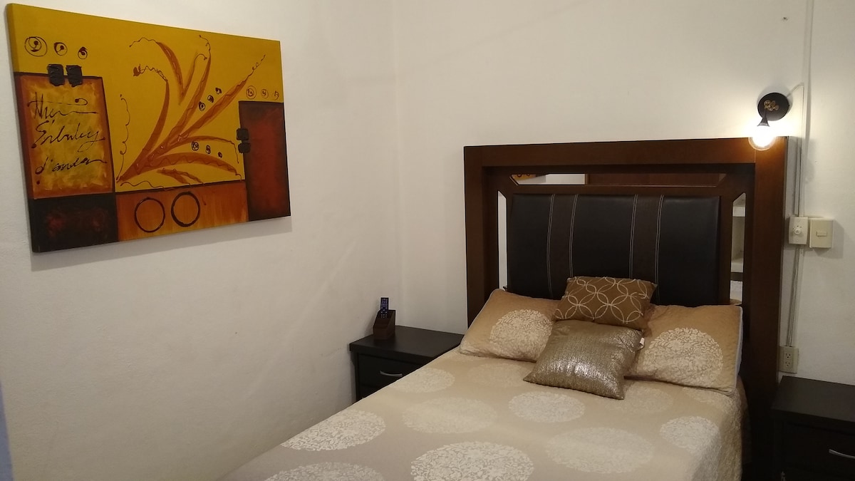 Nice Condo located at Zona Romantica (old Town Vallarta) walking distance to Playa de los Muertos and Olas Altas Restaurante Street (5 minutes). It has a little kitchen; main room with a Kings Size bed, TV, apple TV, convertible sofa, wifi; a nice furnitured living room with a second bed with a beautiful ocean view. Air conditioner in all spaces. Swimming Pool and open private terrace with a table and chairs (special to have a romantic dinner). Prive parking place,