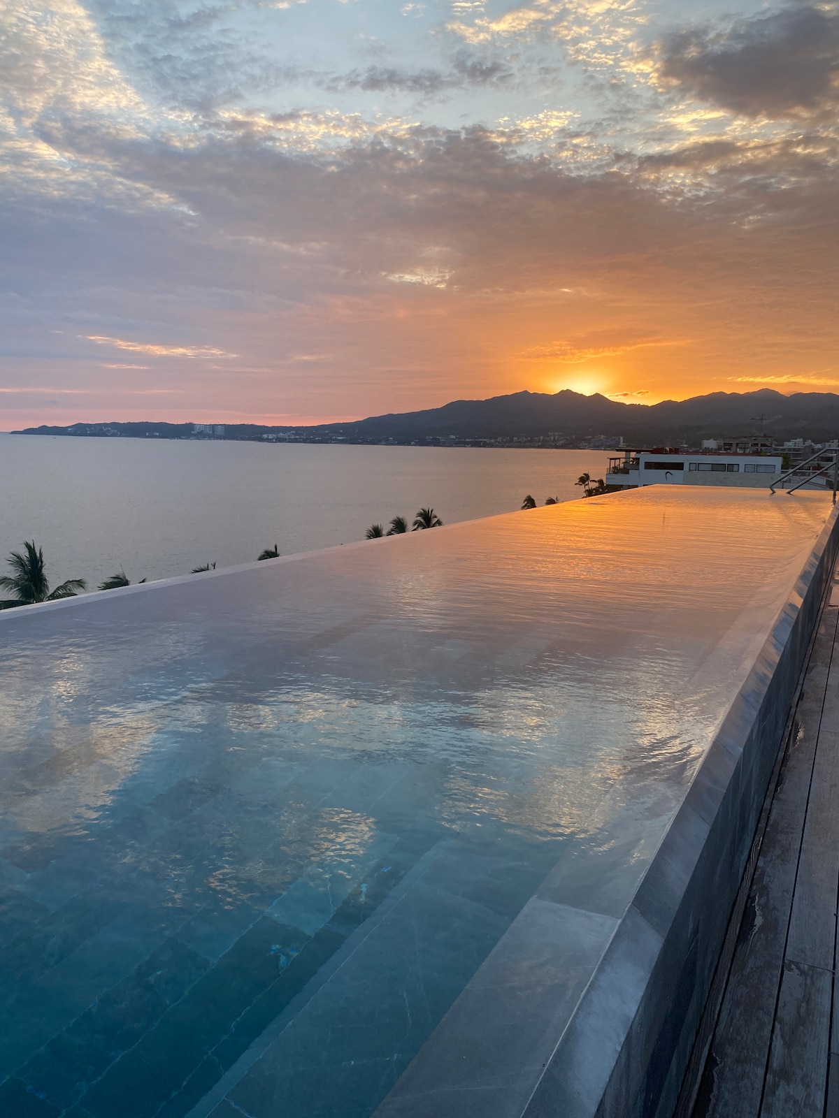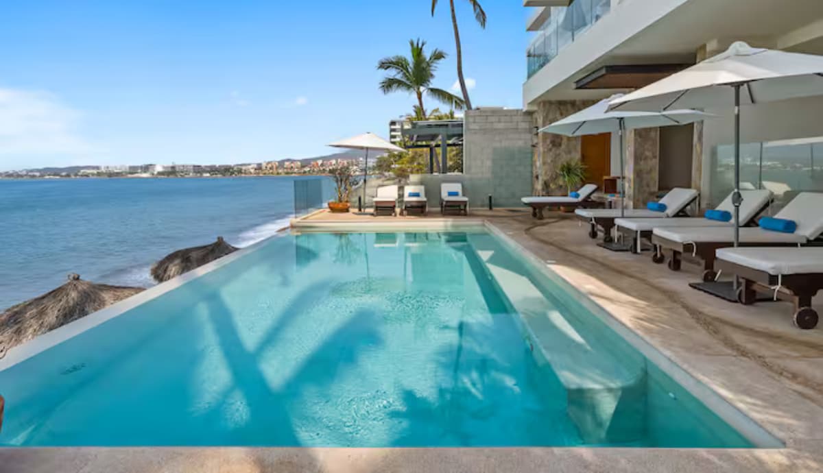 Casa Ke’aku is a hidden gem in Puerto Vallarta for those who appreciate art, design, and refined style. Located in the Romantic Zone, just three blocks from the city’s vibrant gay nightlife, it features contemporary Mexican art, curated interiors, and designer furniture. The rooftop boasts ocean views, an infinity pool, jacuzzi, and stylish bar—perfect for sunsets. A stay here is pure inspiration, comfort, and coastal charm. PV is a dynamic city, with buildings everywhere, we have one behind.