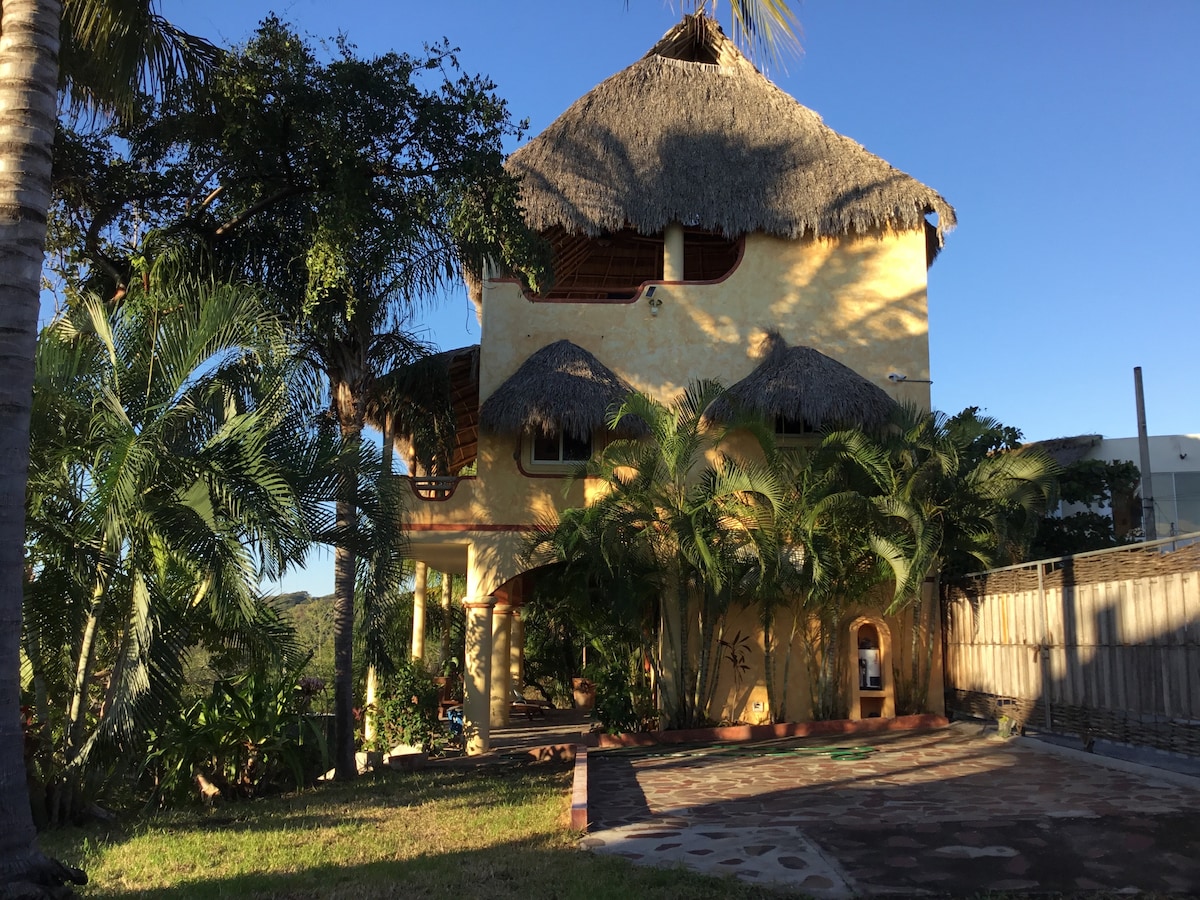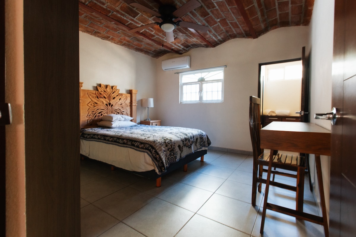 Newly renovated 2 bedroom house only 5 blocks from the beach! Light, spacious and airy with amenities for an amazing beach-town experience. Air conditioning in both bedrooms, with ceiling fans throughout. Modern kitchen with granite countertops. Exposed brick ceilings, and a large shade porch in front of the house. Walk down to the beautiful beaches of Bucerias, the town plaza, and/or restaurants and bars. Our place is perfect for two couples or small families. Hablamos Espanol.