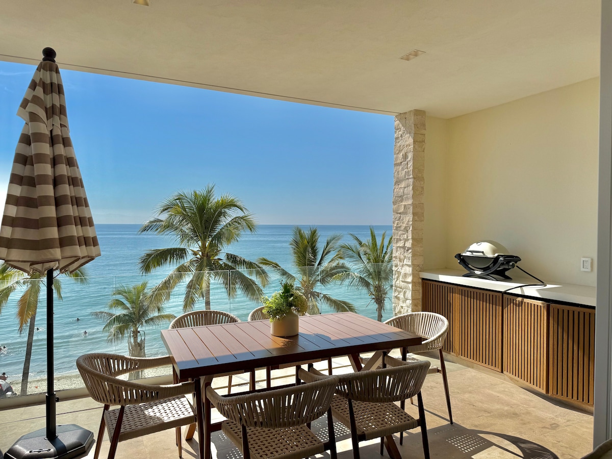 New luxury oceanfront condo in the HEART of Bucerías (Centro) perfect for sunsets & unforgettable stays. Steps to the beach & endless restaurants, bars, & live entertainment! Set on a high floor with a wraparound balcony & breathtaking 180-degree ocean views. Automatic blinds (push a button & take in the views) and expansive sliding doors create a seamless indoor-outdoor feel. Rooftop infinity pool, beach club access, gym, 24/7 security, & private parking. An exceptional beach front experience.