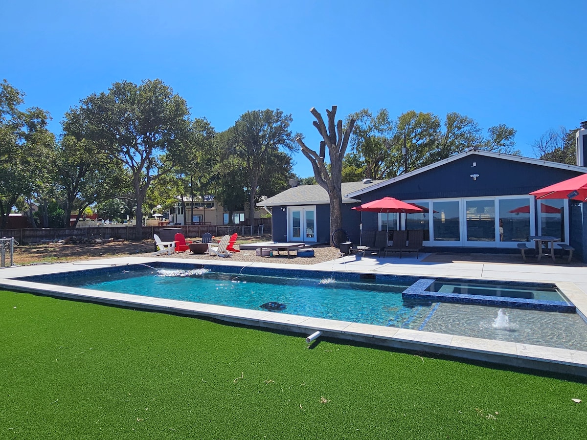 This amazing property puts you on Spider Mountain's peak, where hiking and bike trails await just outside your door and Lake Buchanan vistas surround. The floor-to-ceiling living room windows showcase breathtaking views, as does the private hot tub! Enjoy the game room (former garage) with ping pong, darts, basketball, and plenty of lawn games for the side yard, plus secure bike parking. Grill delicious meals on the deck after hiking the scenic trails. Privacy and darkness ensure a restful visit
