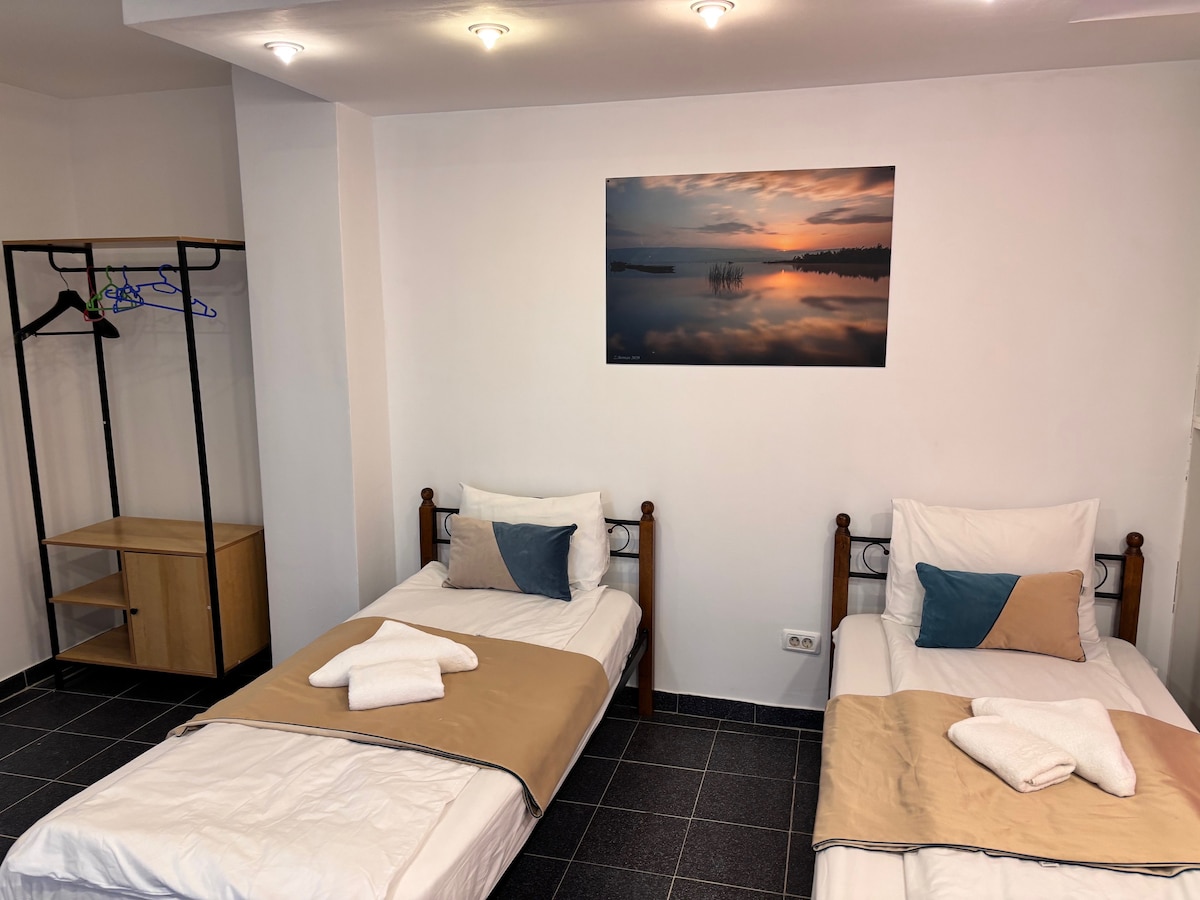 Locuința este ideală pentru persoanele care se aflǎ în tranzit şi au nevoie de câteva ore de odihnă. Preț special redus pentru check-in dupǎ orele 17:00 pm şi check-out pânǎ în orele 08:00 am. La cerere, vǎ punem la dispoziție pǎtuț pentru copii cu vârsta cuprinsǎ între 0-3 ani.