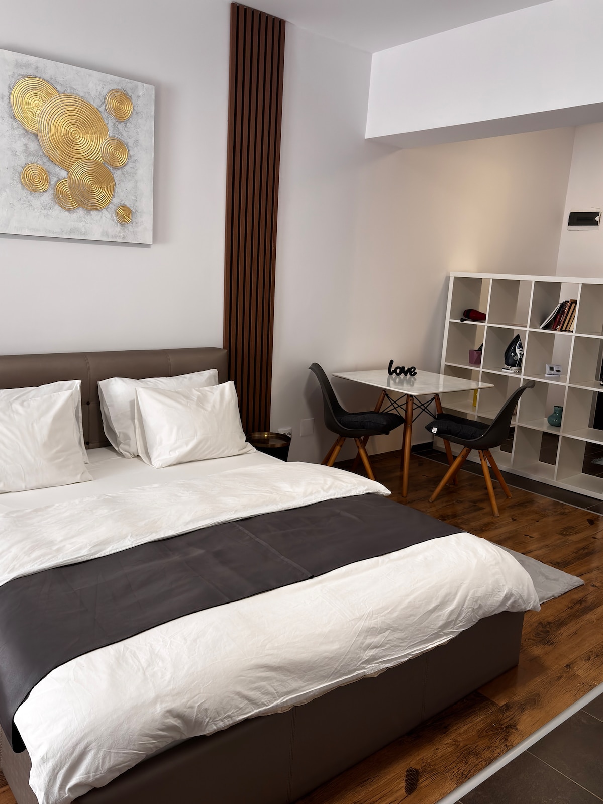 Welcome to Serenity Haven — your peaceful escape in the heart of Bucharest. This refined studio is designed in a modern minimalist style, with warm tones, natural textures, and elegant finishes that create a calm and stylish atmosphere. The perfect retreat for those who appreciate simplicity, comfort, and a great location.