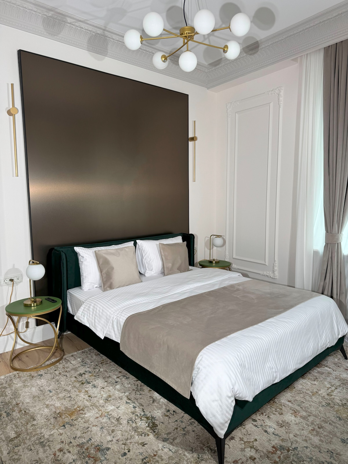 Step into the most romantic room of our newly built boutique hotel, nestled in Bucharest's Old City. As you open the door, a colorful dream unfolds with vibrant purple and green floral accents on the walls, and nature-inspired hues throughout the furniture, floors, tiles, carpets, linens, and artwork. Surrounded by charming restaurants and cafes, this cozy retreat offers self check-in, with easy access to top attractions and just minutes from subway and bus stops. Perfect for exploring the city.