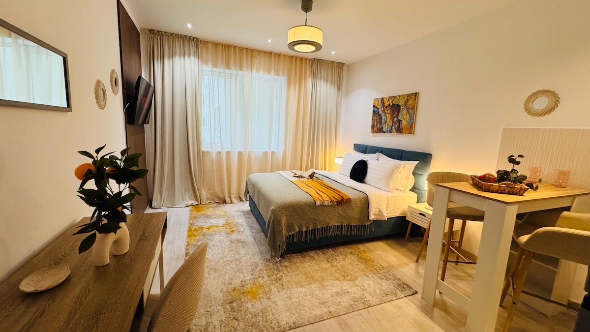 We are inviting you to escape the city buzz and unwind in this modern, fully-equipped Studio apartment nestled in the western suburbs of Bucharest. Perfect for couples, small families, group of 4 or business guests, this cozy place offers all the comfort you need for a relaxed stay. Located in a residential area with easy access to public transport, shops, cafes and urban accessibility. Please message us if you have any questions or you are not fully decided to stay with us.