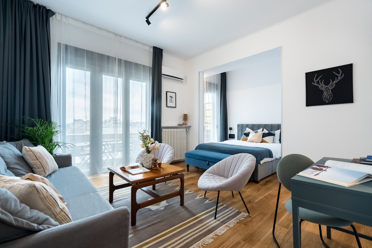 Experience the charm of our urban loft in the heart of the city! Enjoy the peace in our elegant bedroom, with wide windows that fill the room with sunlight, and settle into a luxurious marble bathroom. Located in a lovely neighborhood, this inviting space offers a fully equipped kitchen, a relaxing living area, and a small balcony. Perfect for the modern traveler who values style and comfort. Book your stay - delight in the simple luxuries and make this loft your personal hideaway.