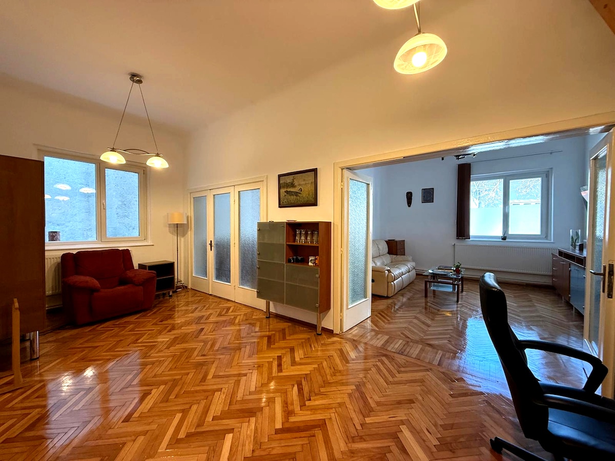 This spacious apartment located in the heart of Bucharest (right behind the National Theater) but on a quiet street with houses, can be the perfect place to host guests who want to easily explore the city and the benefits of comfort. Everything becomes easier when you have immediate access on foot to the most famous part of the city, shops and places to eat, the Universitate metro station (3 min on foot) and the main bus stops in the city. The Old Town (pedestrian area) is 7 minutes walk away.