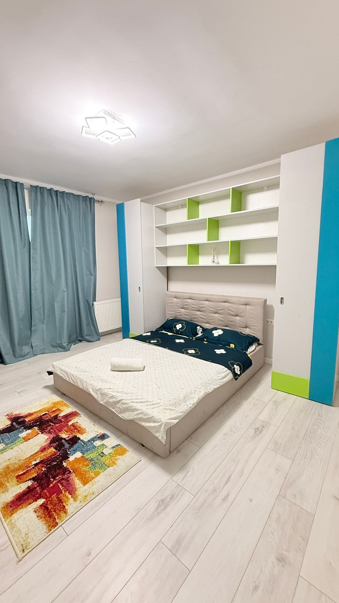 Hello! Numele meu este Daniela si va pun la dispozitie un studio complet mobilat, elegant. Zona de odihna și cea de zi sunt delimitate, asa cum se poate observa în poze. Exista un pat dublu și o canapea extensibila. De asemenea, studio-ul este dotat cu TV cu ecran plat și bucătărie complet utilată, care oferă oaspeților aragaz, cuptor, aparat cu microunde, frigider si mașină de spălat ce se afla în baie. Se afla la doar 1 km de Aeroportul Otopeni. Sper sa va simțiți superb! 😀