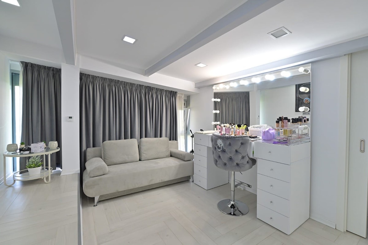 Un apartament rafinat situat pe faimoasa Calea Victoriei, una dintre cele mai iconice străzi din București. Apartamentul nostru oferă un pat matrimonial confortabil, lumini ambientale moderne și facilități de calitate superioară, asigurând o ședere plăcută și relaxantă. Așezat într-o clădire istorică, locul combină farmecul vechiului București cu un design contemporan impecabil. I