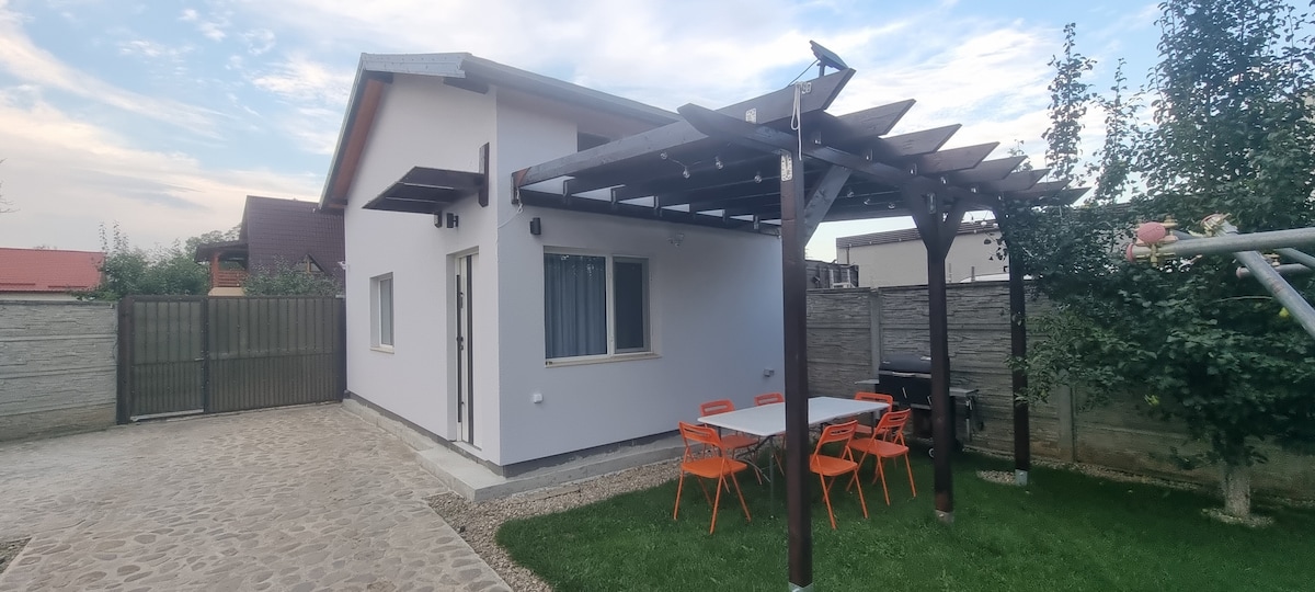 Welcome to our unique home in Berceni, handcrafted by me, and my father. With 3 bedrooms, 2.5 bathrooms, a terrace with a projector, and 3 TVs, this DIY house has originality and creativity. As an artist, my paintings adorn the decor. Enjoy the BBQ, outdoor sound system, fireplaces, and air conditioning. Furry pets can play inside and outside in the dedicated area. Parking for 2 cars. It's a very safe neighborhood. A perfect stay awaits you! Artloft dot ro