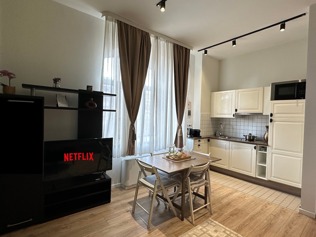 市中心- 1卧室,带阳台和Netflix +城市景观