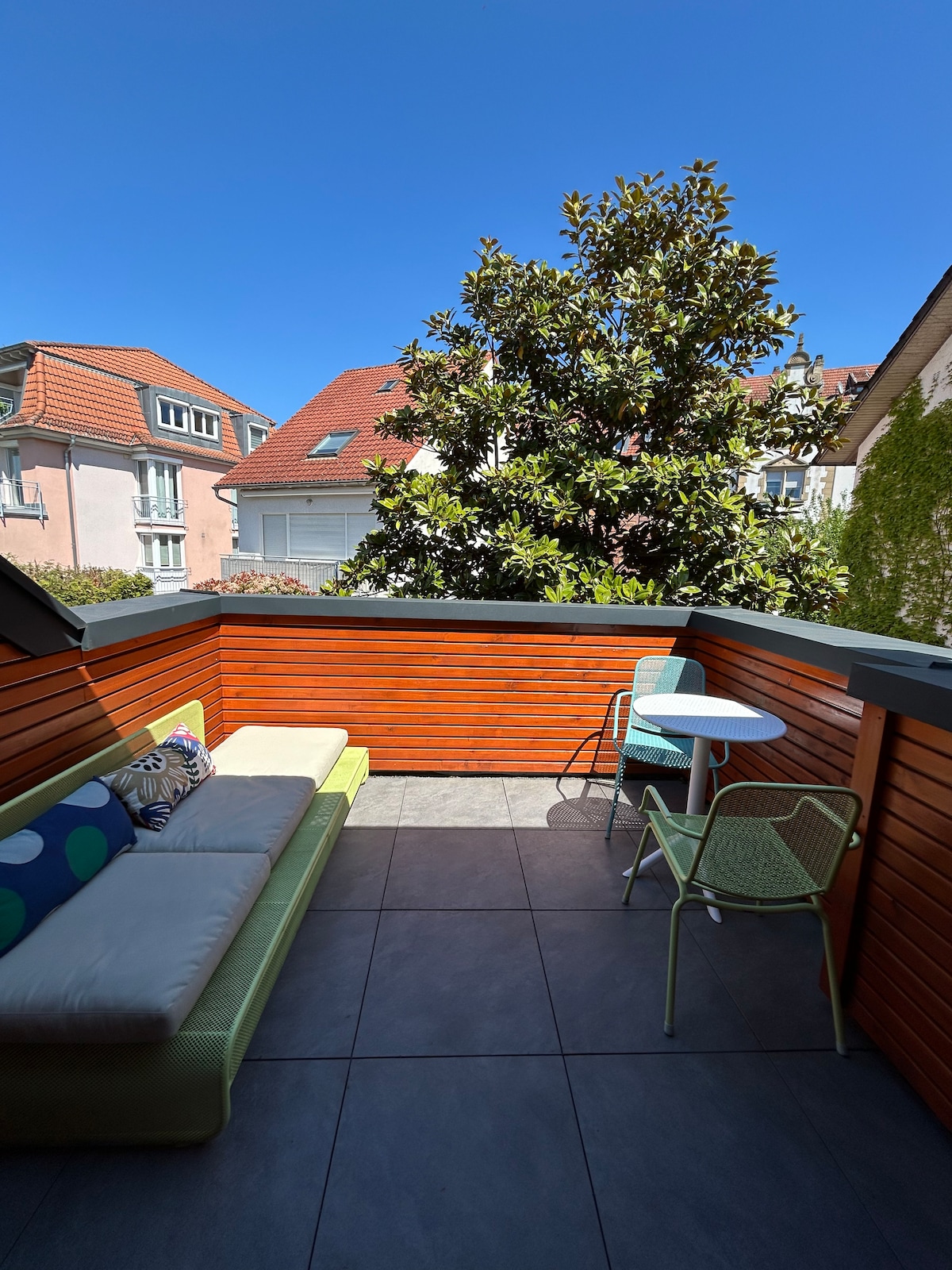 Unsere stylisch & lässig eingerichtete, verkehrs- sowie freizeitechnisch perfekt gelegene, mit allen Annehmlichkeiten ausgestattete Oase mit Penthouseflair, ist eine Hommage an die wärmste Region Deutschlands. Sobald du "The KAlifornia" betrittst, riecht alles nach Fernweh & Behaglichkeit. Chille draußen auf der geilen, großen Dachterrasse neben Palmen in deiner Hängematte & Lounge, relaxe drinnen auf deinem gemütlichen Bett oder bei einem geilen Buch mit bestem Kaffee, Mokka oder Vino.
