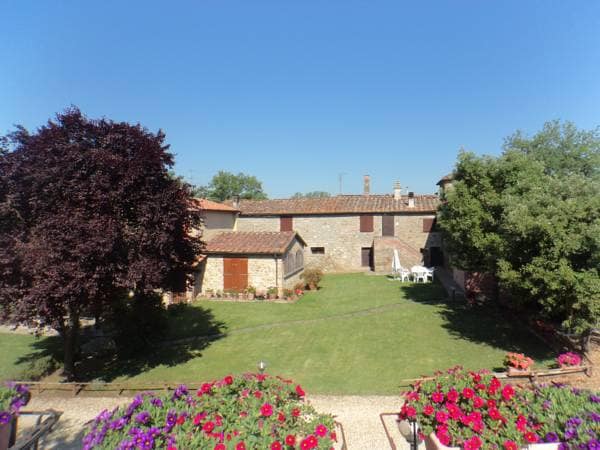 PLEASE NOTE THAT BEING IN THE COUNTRYSIDE WITH FEW PUBLIC TRANSPORTATION OTHER THAN TAXI, THE BEST WAY TO ENJOY YOUR STAY AND TO VISIT THE BEAUTIFUL SURROUNDINGS IS TO HAVE A CAR. The 18th century Villa di Geggiano, surrounded by vineyards and lovingly cared gardens, is located in the Chianti area near Siena, one of the most beautiful regions of Italy which will provide an idyllic and enchanting backdrop to your vacation. Our guesthouse is located in one of the garden pavilions of the villa.