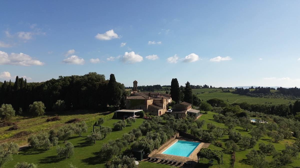 Welcome to Cuvée's Tuscan Farmhouse Estate, an iconic restored 16th-century farmhouse with quintessential Tuscan charm and modern amenities including an infinity pool, helipad, estate chickens, olive grove, and views of surrounding vineyards and Vertine Castle. Tucked in Chianti Classico's heart, experience designer elegance, restored architecture, and breathtaking Tuscan views. Walk to a Medieval castle, wake to farm-fresh eggs.