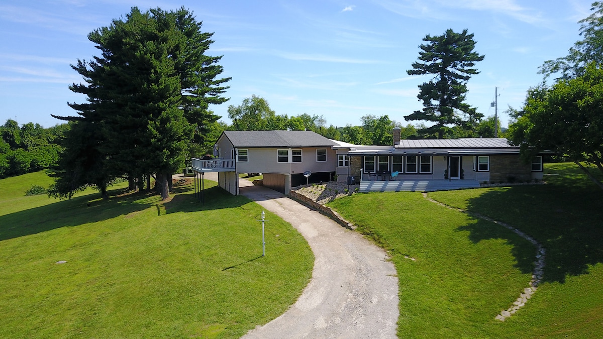 Welcome to the Oak Ridge House. Just 5 miles North of I-70 and 5 miles south of State Rt.16. Our tree cover hillside is very close to Flint Ridge Nature Preserve and about 15 minutes from The Virtues Golf Club, Black Hand Gorge Nature Preserve and Sand Hollow Winery. It's a three bedroom home on 2 acres, one king size bed, one queen size bed, and the third room is a sitting room / hang out space with a futton. The enclose back porch is a great hangout space but is not heated. Gov. ID required.