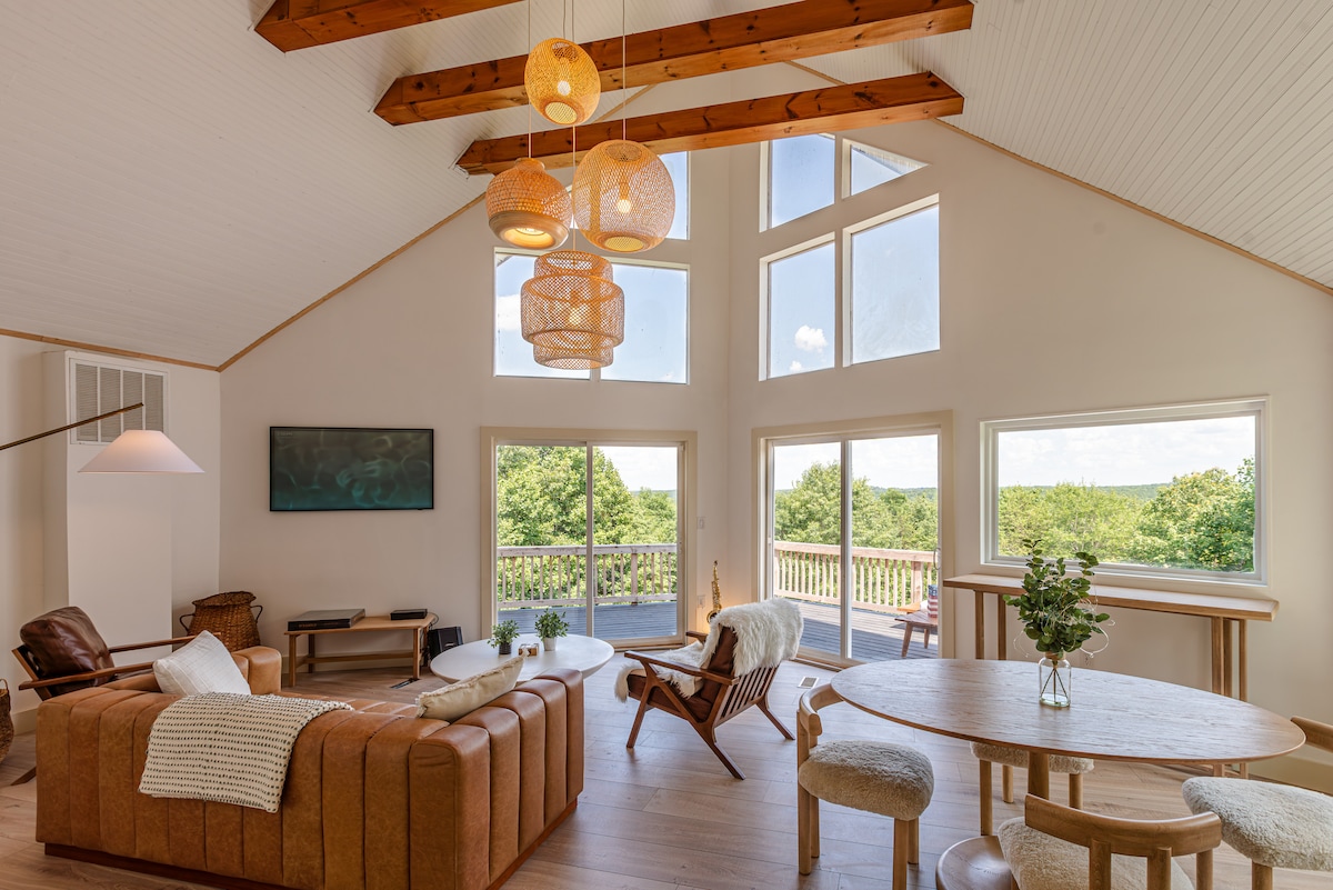 For animal lovers seeking an exclusive and unique getaway, this boutique Airbnb in Scottsville offers a tranquil escape where guests can unwind in nature and connect with the sanctuary’s resident animals. Recognized by Northern Virginia Magazine, Trips 101, and Trips to Discover as one of Virginia’s most distinctive stays, this thoughtfully curated retreat features cozy furnishings, charming handcrafted details, and an expansive window that showcases views of the animals.