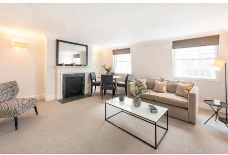 Upscale two double bedroom apartment in a listed period Mayfair block, moments from Piccadilly and the open spaces of Green Park and the tube. The property is situated on the second floor with a lift and benefits from large windows which offer excellent light throughout . The apartment comprises entrance hall, large living/dining room overlooking Green Park with wall mounted Smart TV, two double bedrooms, full fitted kitchen with all appliances and a marble bathroom.