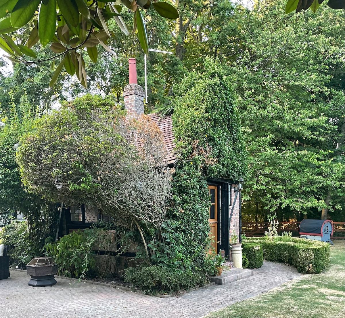 A rustic cabin in lovely gardens adjacent to the main house. It has its own secluded garden & deck. Secure parking in large gravel drive. Ideal for Guests attending weddings/celebrations at Hedsor or Cliveden House Visiting the Gardens, Tea or Spa Day at Cliveden it’s on our doorstep! 8 miles to Windsor, visit a famous Castle. Beautiful walks by the River Thames, very pretty local villages with quaint country pubs Suitable two guests