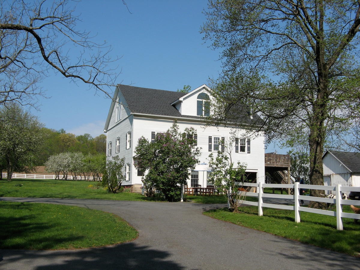 Come and enjoy a winter wonderland, an enchanted spring, glorious summer or inspirational fall, at the 180acre historic working Kirkland Farm in Bucks County, Pennsylvania. Deep in the countryside, down a long winding drive, the Guest House at Kirkland Farm is filled with antiques and charm, and overlooks the woodlands, orchards, cornfields, barns, and horse pastures. Perfect for families, groups of friends, artists, equestrians and those who love the outdoors.
