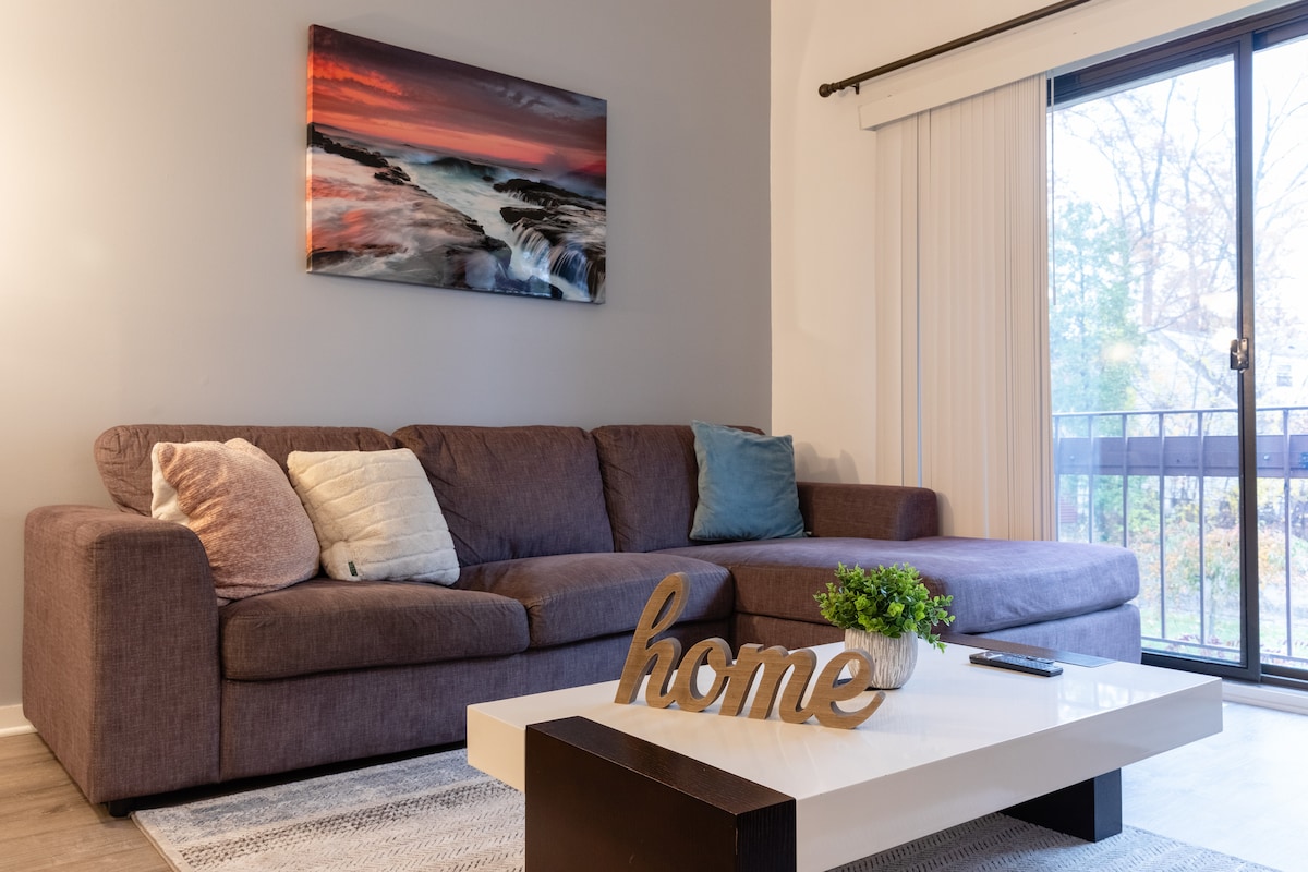 Relax and unwind in this super luxurious, 1 bedroom boutique condo within a few walking minutes of downtown Lawrenceville . Just park your car and enjoy! PARKING IS INCLUDED!!! THINGS TO NOTE: -WIFI INCLUDED -TOWELS/SHEETS INCLUDED The private bedroom has a QUEEN Size Bed w/ walk-in closet to store your items. The living room sofa pulls out to a plush queen size bed.