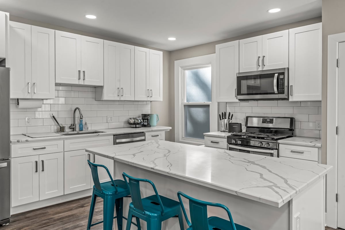 Cozy Cricket’s Cove is a private 2-bedroom, 1-bath guesthouse in Glenside that sleeps 7. Minutes from Keswick Theatre and a short drive to Center City Philly and Sesame Place, it offers easy access to events with a peaceful place to unwind. Enjoy high-speed WiFi, central AC, a fully equipped kitchen, and free two-car driveway parking. The fenced backyard, patio seating, and fire pit create a relaxing outdoor space for families and pets. Self check-in and responsive hosting ensure a smooth stay.