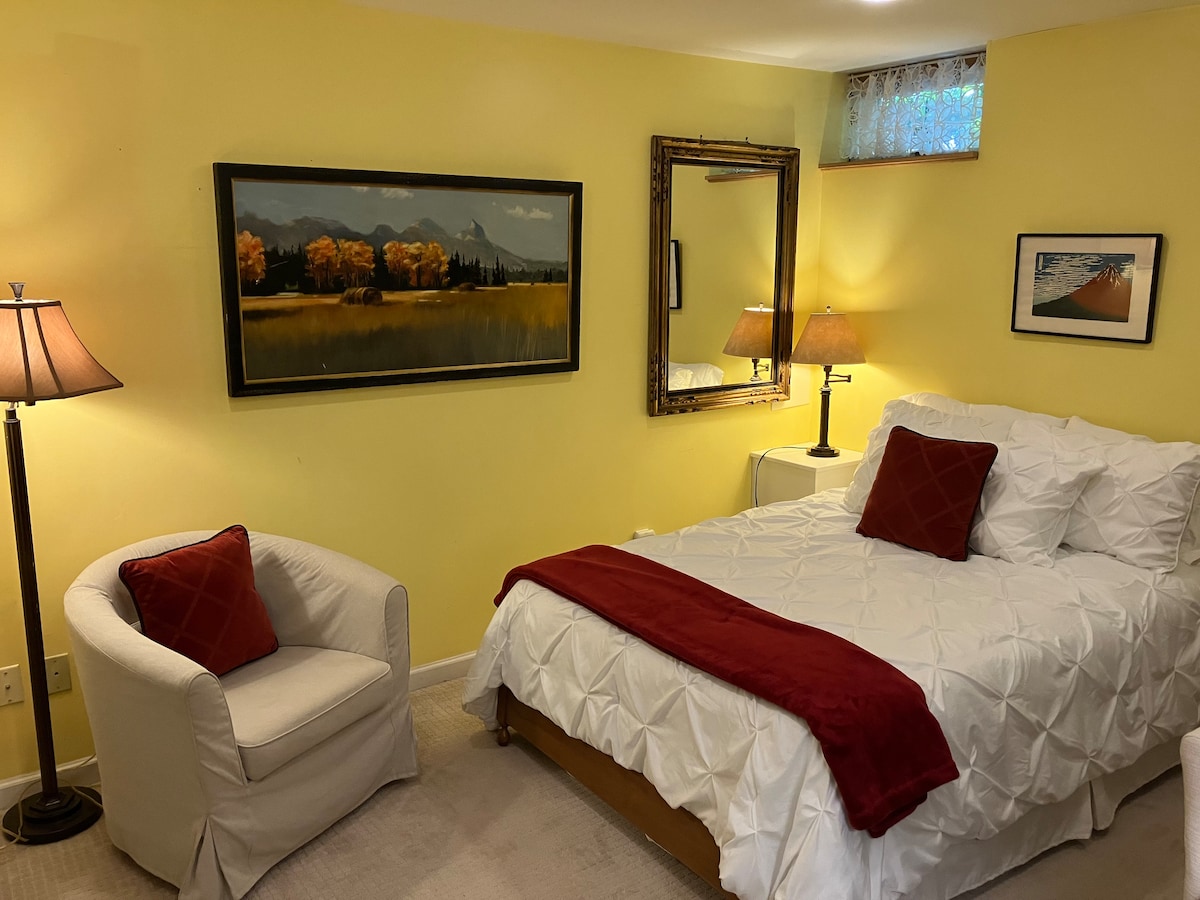 This stylish place is near the quaint towns of Langhorne Borough, Newtown, and Yardley. Central location near main roads & train stations. Ground level. Plenty of restaurants & bakeries some within walking distance. Quiet & serene location with brick patio & outdoor shower. Professional massage- additional cost. Fresh ground coffee. private driveway, use of washer & dryer,TV in main room- streaming-no cable. Shared bath with separate entrances. Parks nearby.