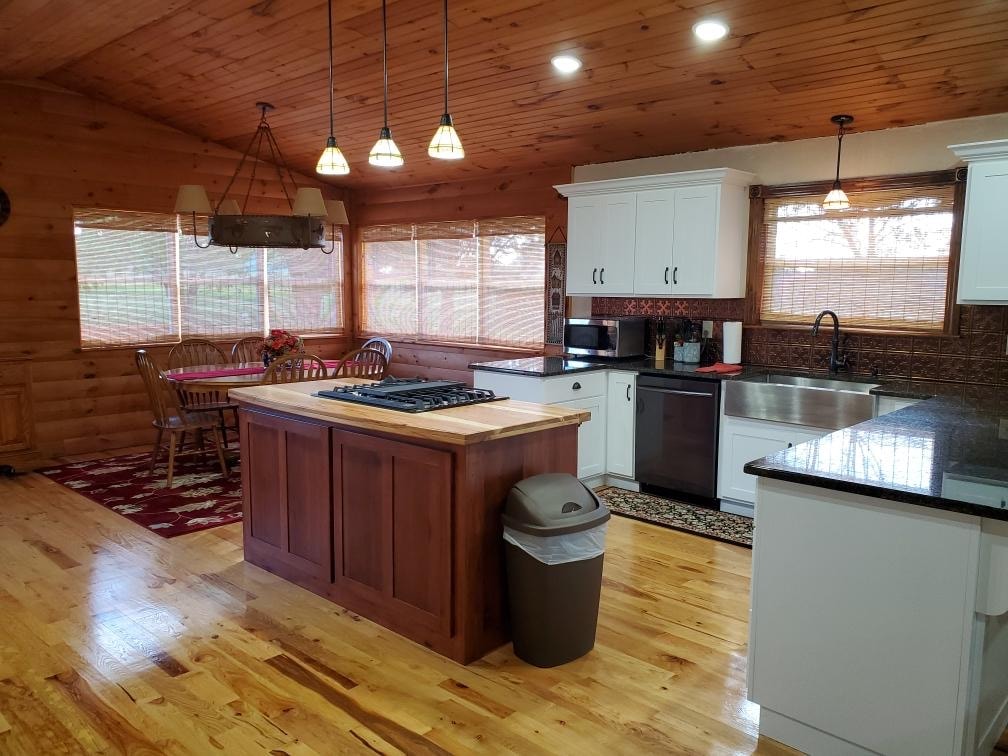 A beautiful, 2 bedroom 1 bath cabin nestled among many towering native pine and dogwood trees. If you enjoy nature this is a setting you'll love! The home is everything you'll need as you travel. It is complete with stove, dishwasher, microwave, TV, washer, dryer, setting area, and gas grill! Just 5 miles from Current river and Montauk state park, you'll be relaxing in no time! It is also just a 10 minute drive to Jadwin, MO if canoeing or kayaking is your flavor.