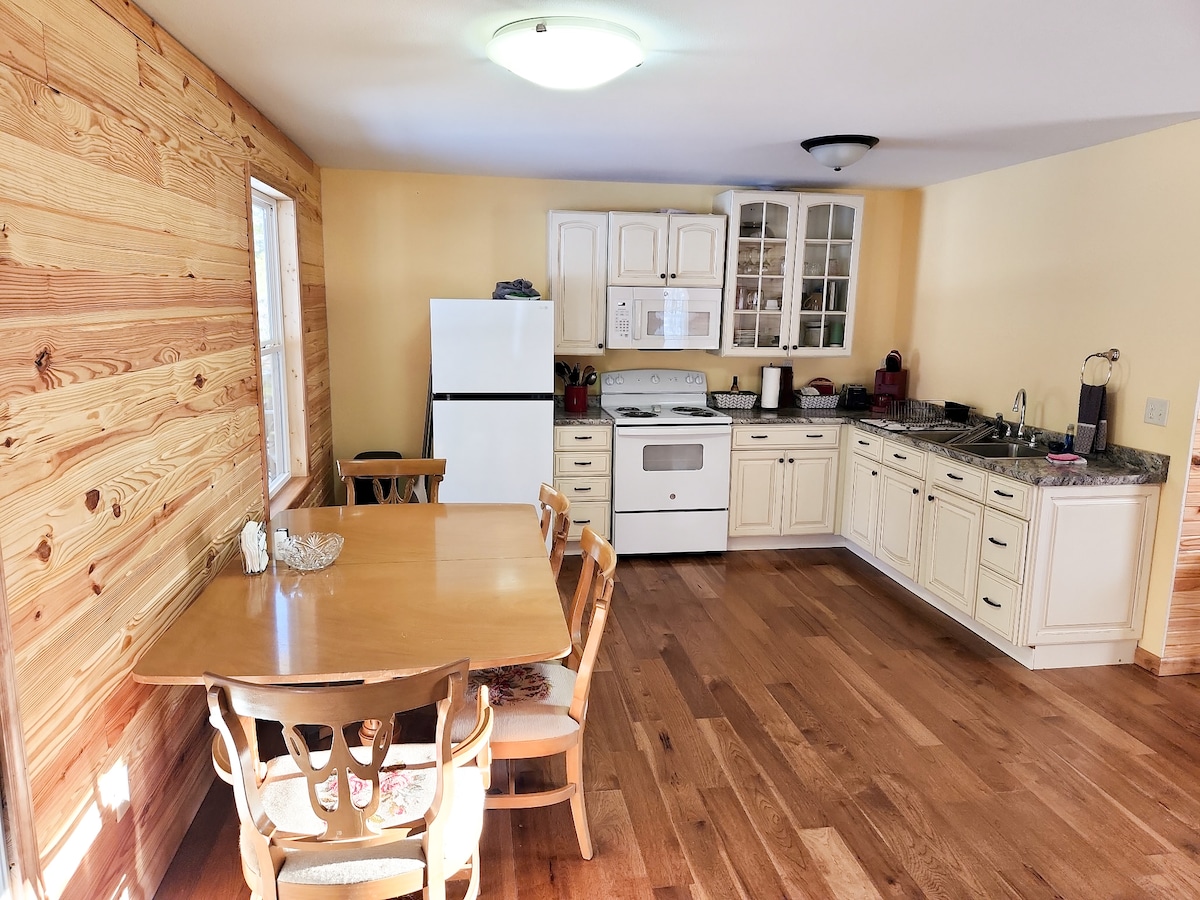 You won’t forget the peaceful surroundings of this rustic destination. Your stay with us is sure to bring you back to simplicity of life while comfortably cozy and relaxed . While TV and WiFi are available , you will find yourself content with viewing the activities of the surroundings and serene atmosphere. Just minutes away you’ll find exciting selections of activities , excellent dining , and friendly small businesses with a wide selection of interest .